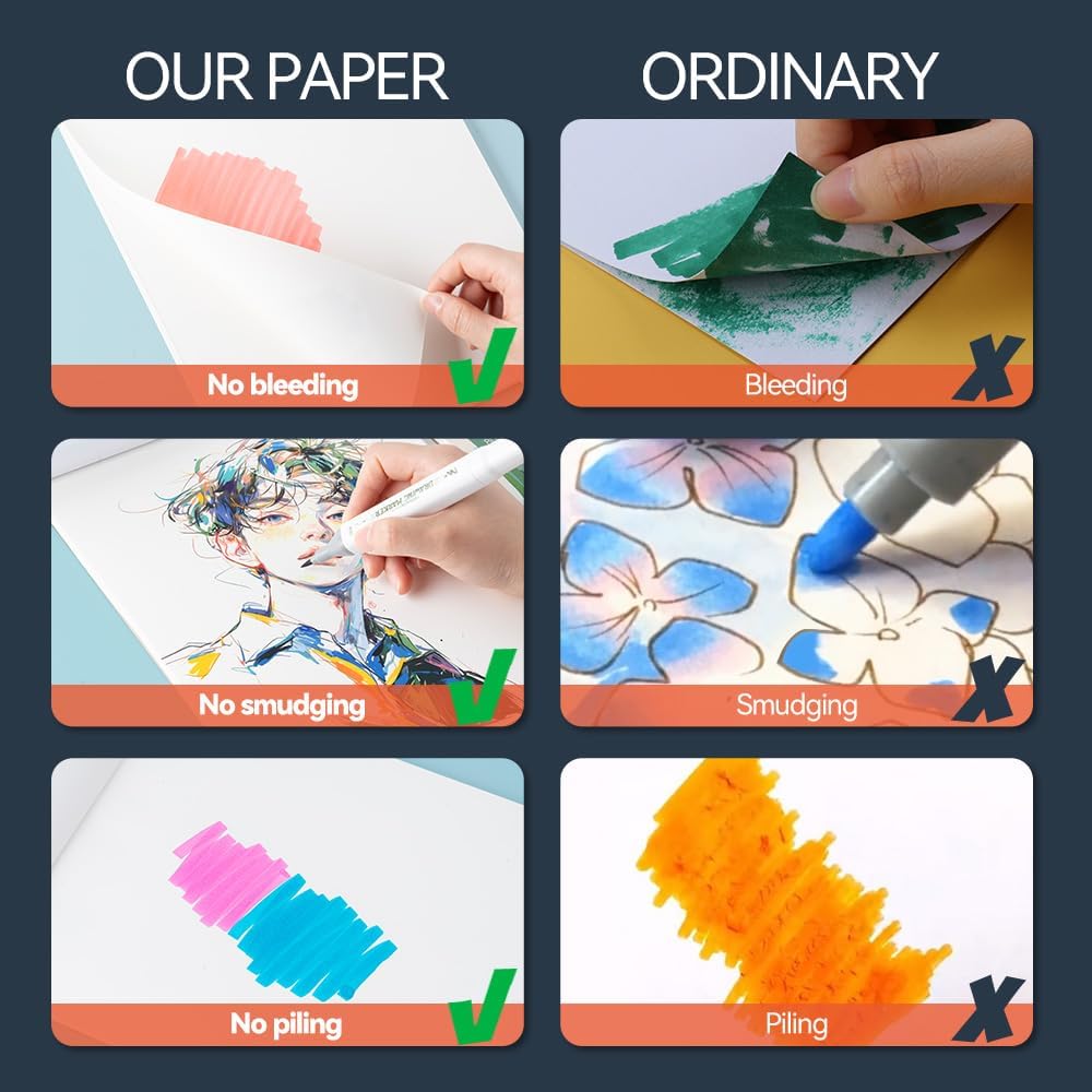 - This pad is versatile, suitable for different medium, support alcohol markers, acrylics markers, watercolors, gouache, inks, pencils and pastels, etc.