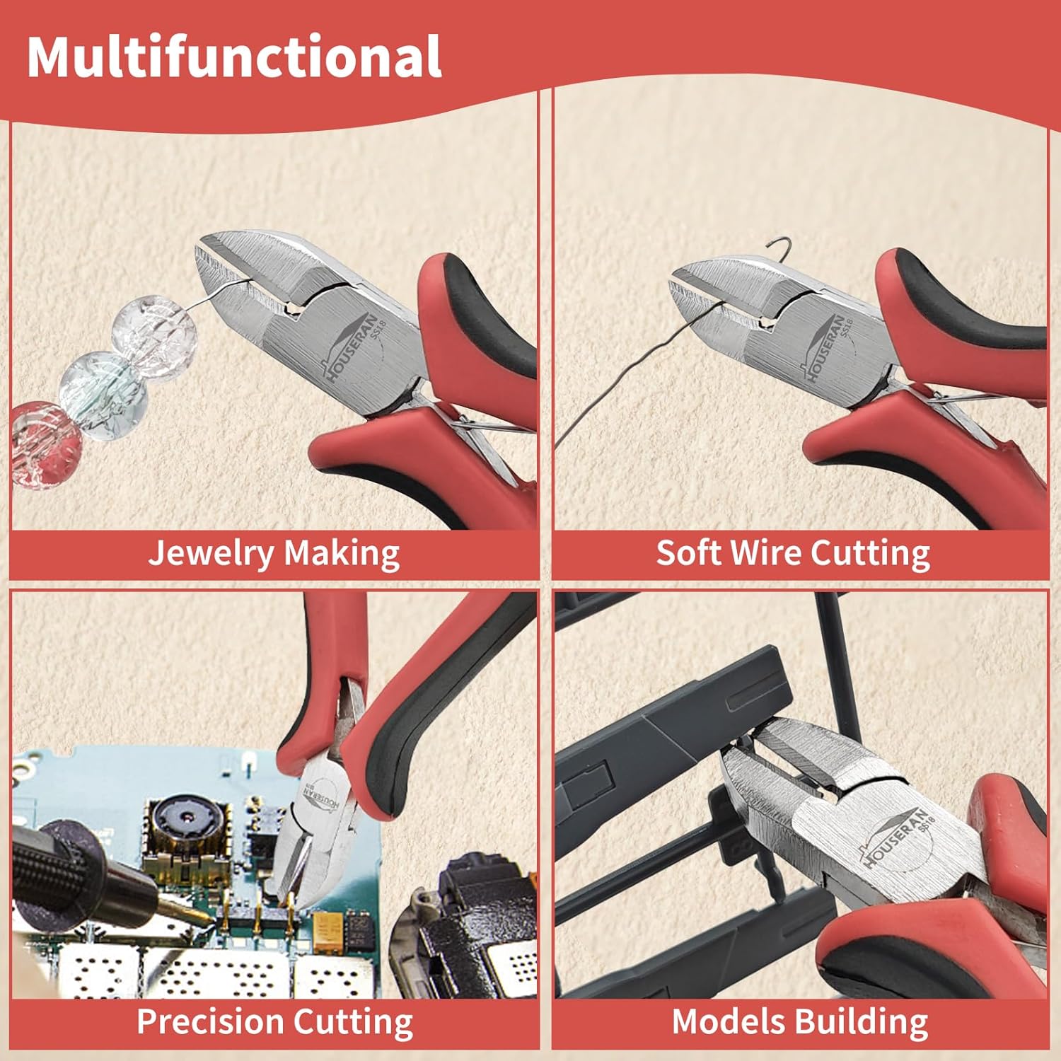 - Precision Side Cutting: These wire cutters feature an angled design for clean, precise cuts on plastic gates, wires, and thin metal materials, leaving smooth, burr-free edges.