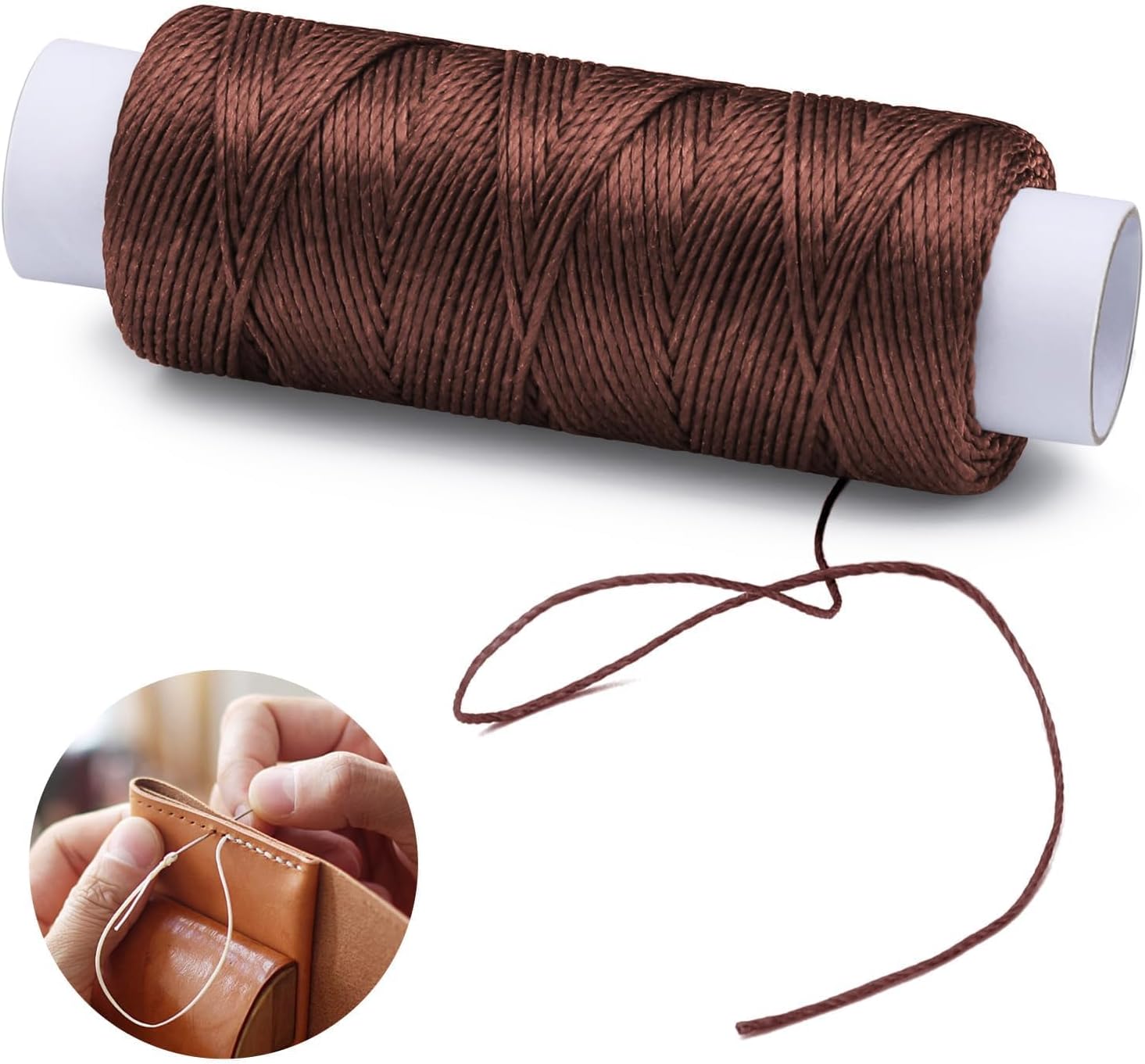- Waxed Thread for Leather: 0.8 mm thick, 54 yards per spool, leather sewing thread made from braided polyester, the amount of wax on the cord is moderate and easy to handle, Multi-strand woven round waxed thread strong, wear-resistant, and waterproof, ideal for leather sewing, stitching, braiding, knotting, beading, binding, necklace and bracelet making