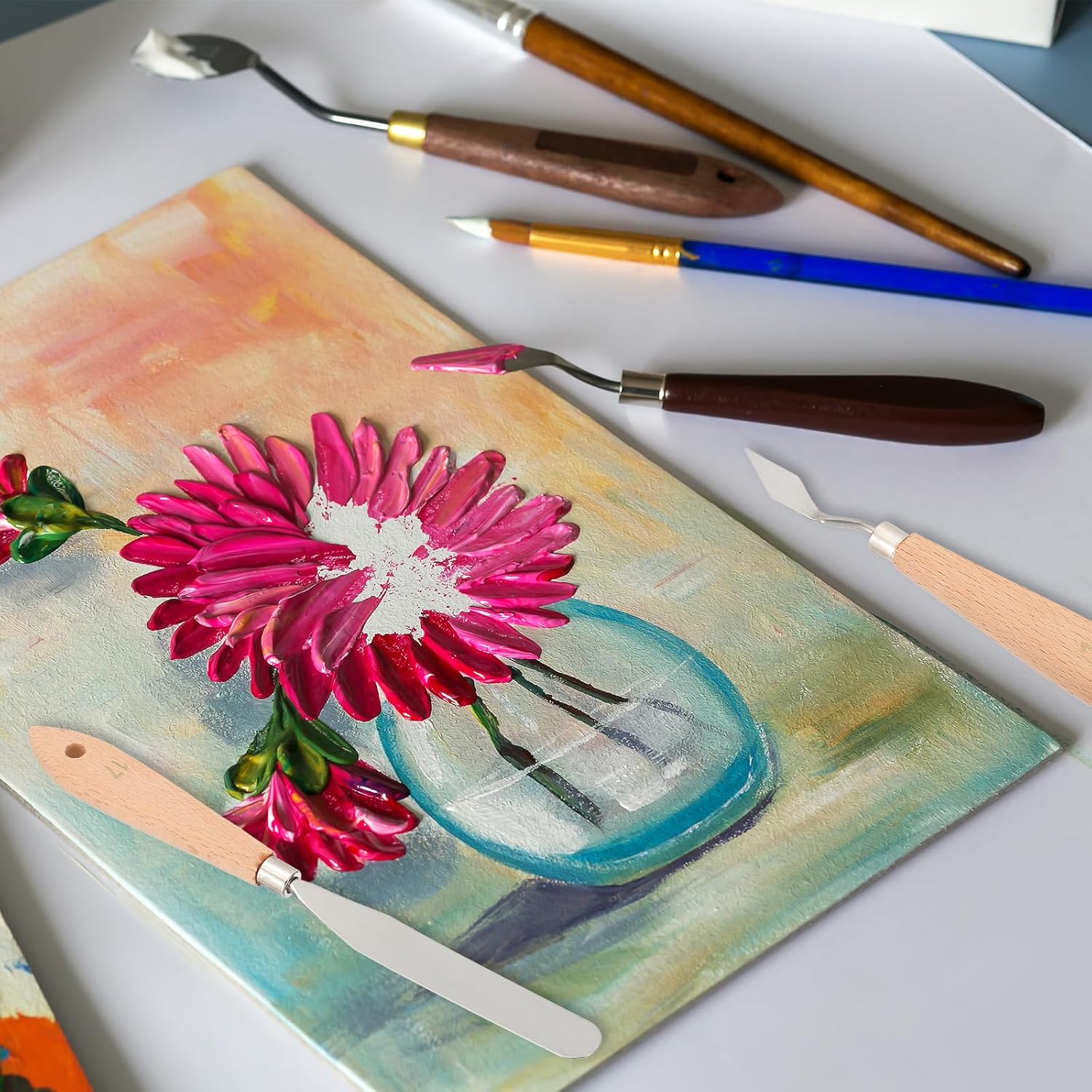 - Advantage: This painting knife is made of durable stainless steel that is wear and corrosion-resistant, scratch-resistant with a smooth surface for you to pick up paint and clean easily. The curved blade can prevent paint from getting on your clothes. The blade is also flexible enough, allowing you to paint flexibly.;The ergonomically designed wooden handle is durable and comfortable to grip, giving you an excellent painting experience. Tightly connected handles and blades are not easy to fall o