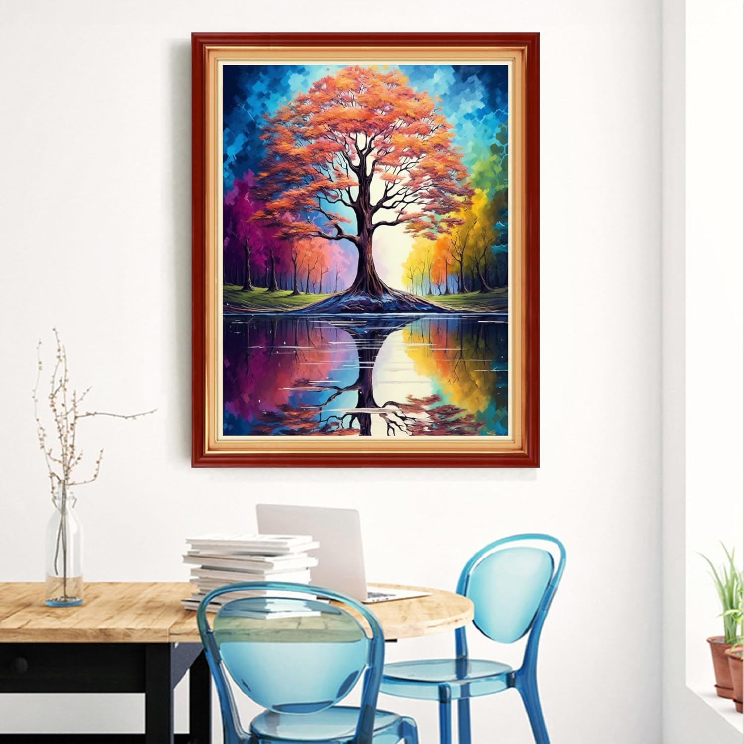 Magxvouy Cross Stitch Kits Stamped Full Range of Embroidery Kits,Cross Stitch Patterns Needlework Kits for Beginners 11CT Printed Kits&Reflection Tree 16x20 inch