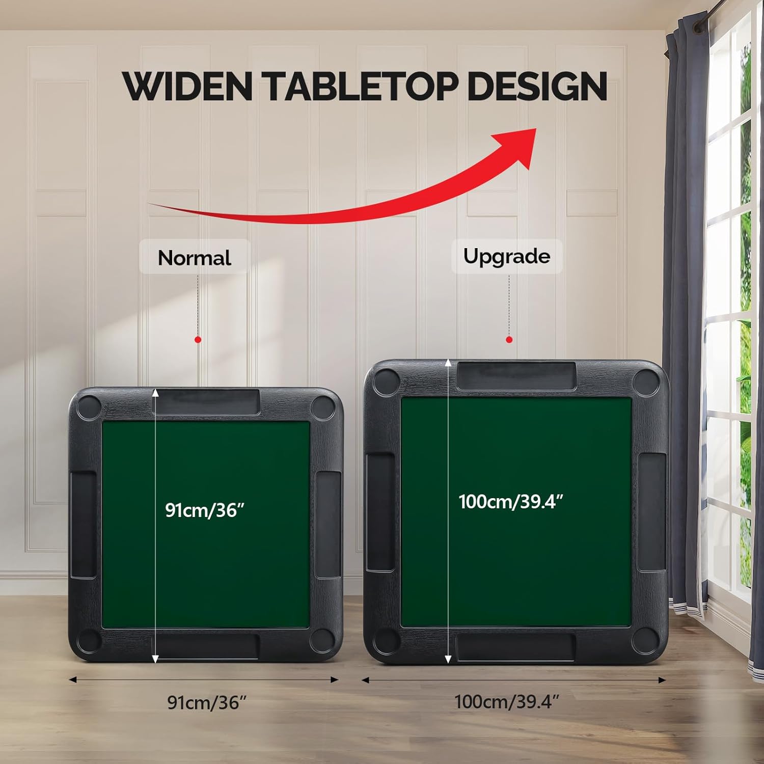 - 【Widened Wear-resistant Tabletop】The tabletop is made of skin-friendly felt, which provides a soft and comfortable touch.It has excellent wear resistance and easy to maintain. Widened 39.5" x 39.5" (L x W) table top provides you with ample space for mahjong tiles, playing cards and other items.It allows 4 players to play comfortably.