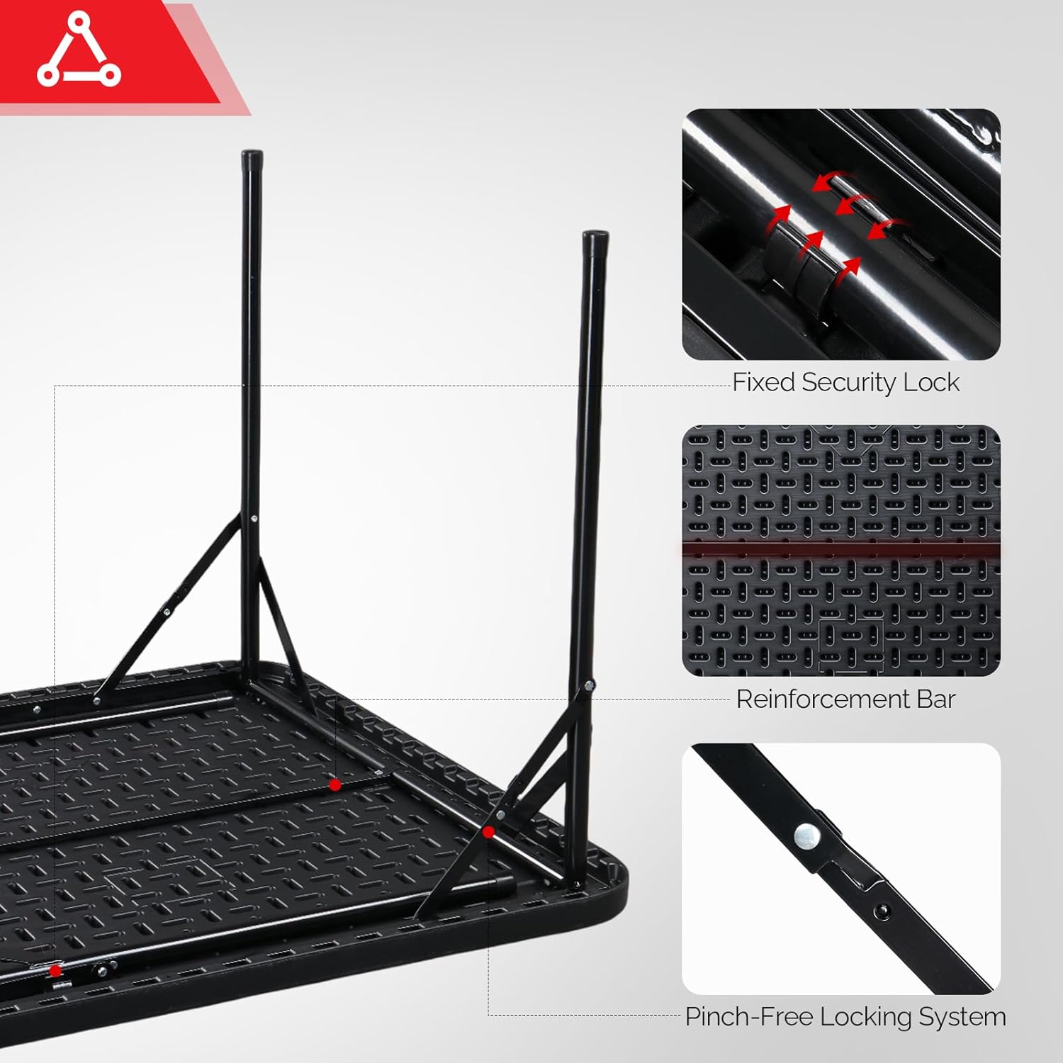 - 【Sturdy & Durable】It is made of strong and durable high-quality PE material and powder-coated iron frame. The non-slip feet and triangular support hinge design of the table legs add stability while avoiding scratching the floor. The honeycomb structure design makes the table top more pressure-resistant and less prone to deformation.It able to bear up to 265 lbs.