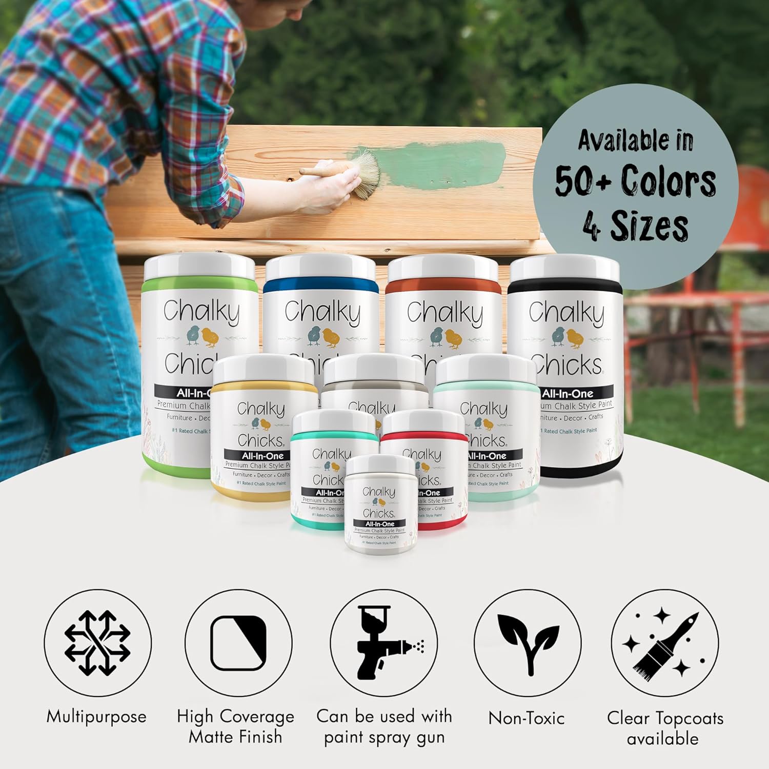 - TRANSFORM FURNITURE AND HOME DECOR WITH EASE: Chalky Chicks will save you time, money, and hassle. No sanding, priming, or multiple coats needed—just start painting your furniture with our cabinet paint no sanding or priming. Our paint is suitable for wood, metal, concrete, textiles, laminate, and more. Whether you prefer navy blue chalk paint, light blue paint, or green chalk paint, our chalk paint for furniture transforms any space with ease, making it ideal for DIY projects & craft painting.