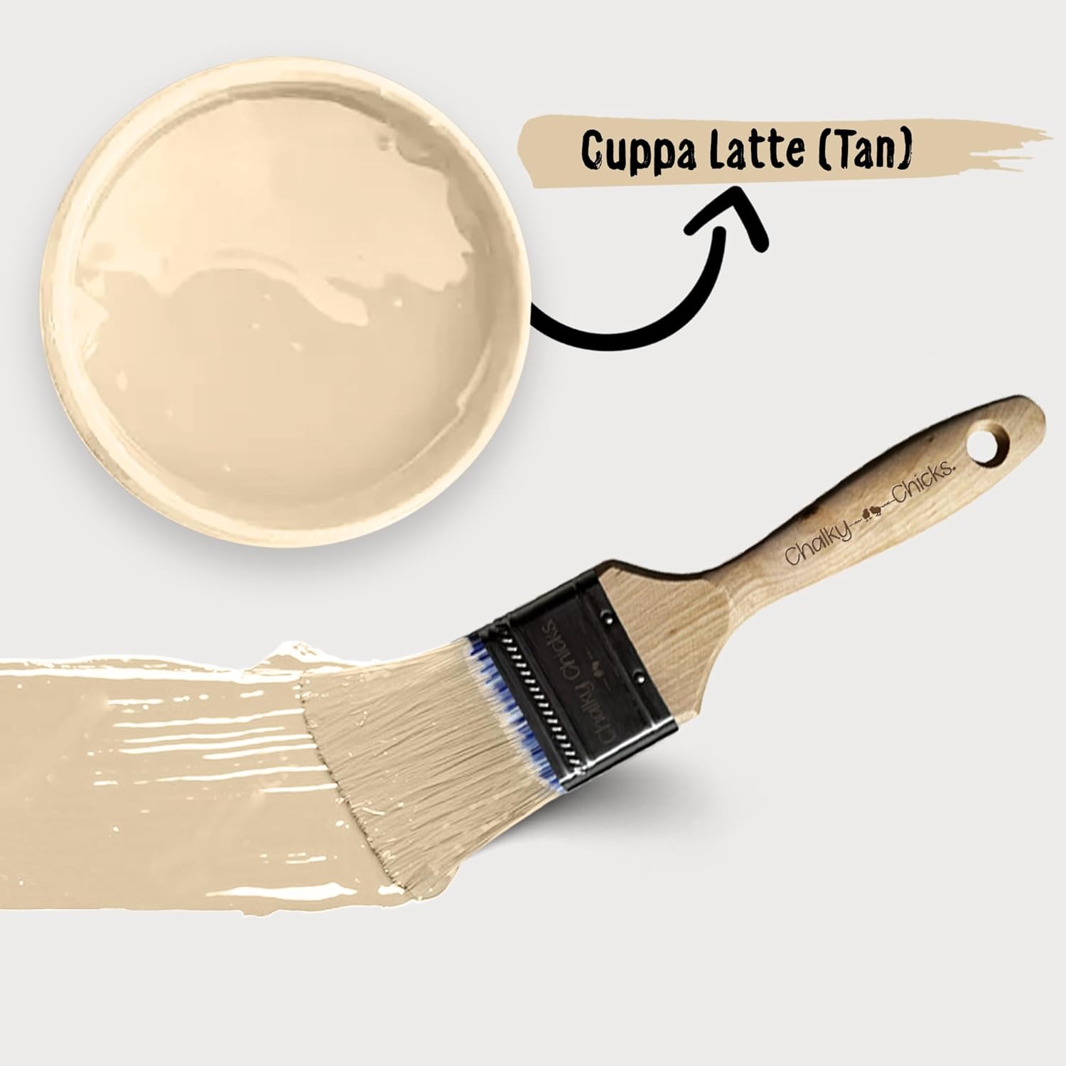 Chalky Chicks All-in-One Chalk Paint for Furniture or Cabinet - 8 Fl Oz - Matte Finish Cuppa Latte Tan for Metal, Wood Furniture Paint - No Sanding All-in-One for Home Decor & Crafts, USA Made
