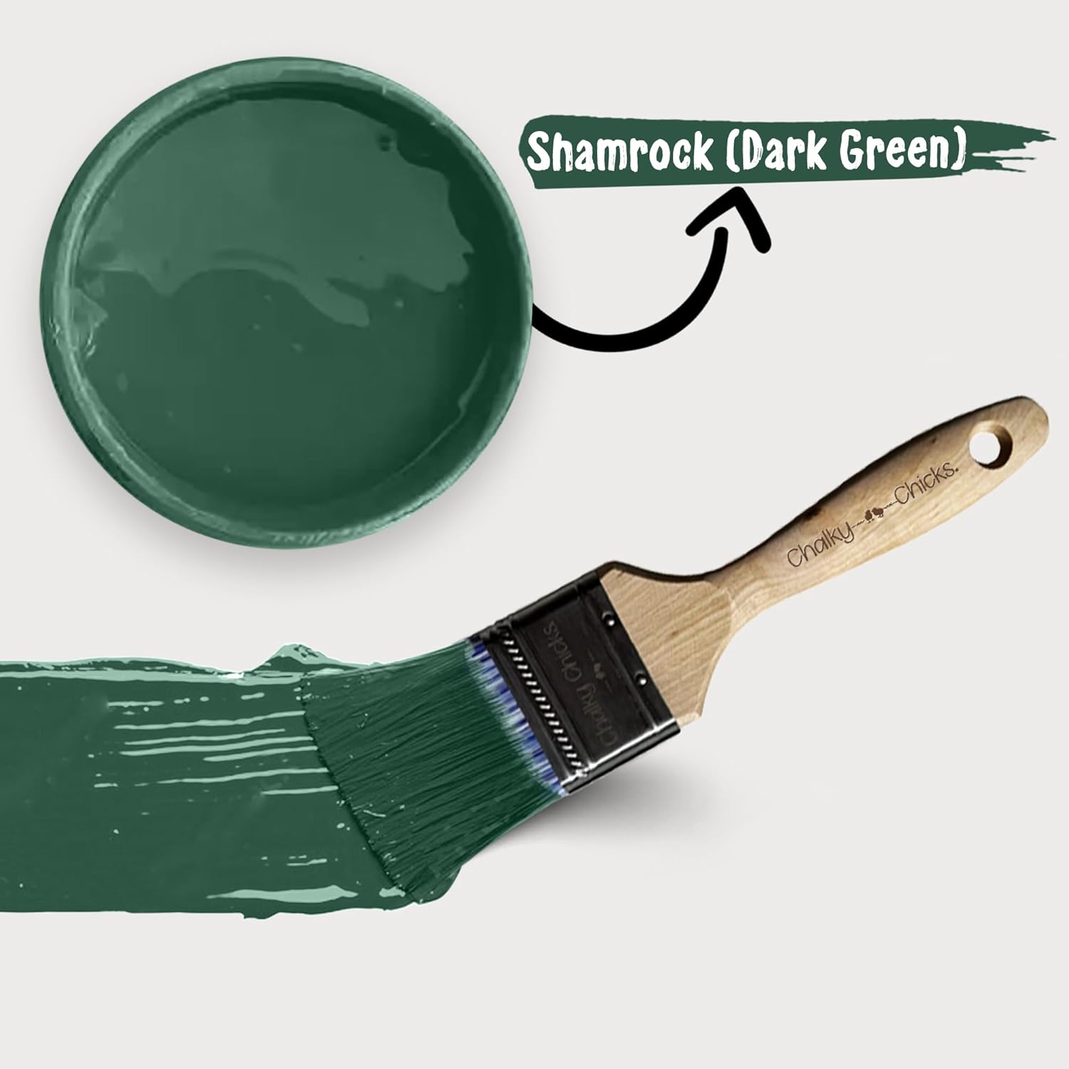 Chalky Chicks All-in-One Chalk Paint for Furniture or Cabinet - 8 Fl Oz - Matte Finish Shamrock (Dark Green) for Metal, Wood Furniture Paint - No Sanding All-in-One for Home Decor & Crafts, USA Made