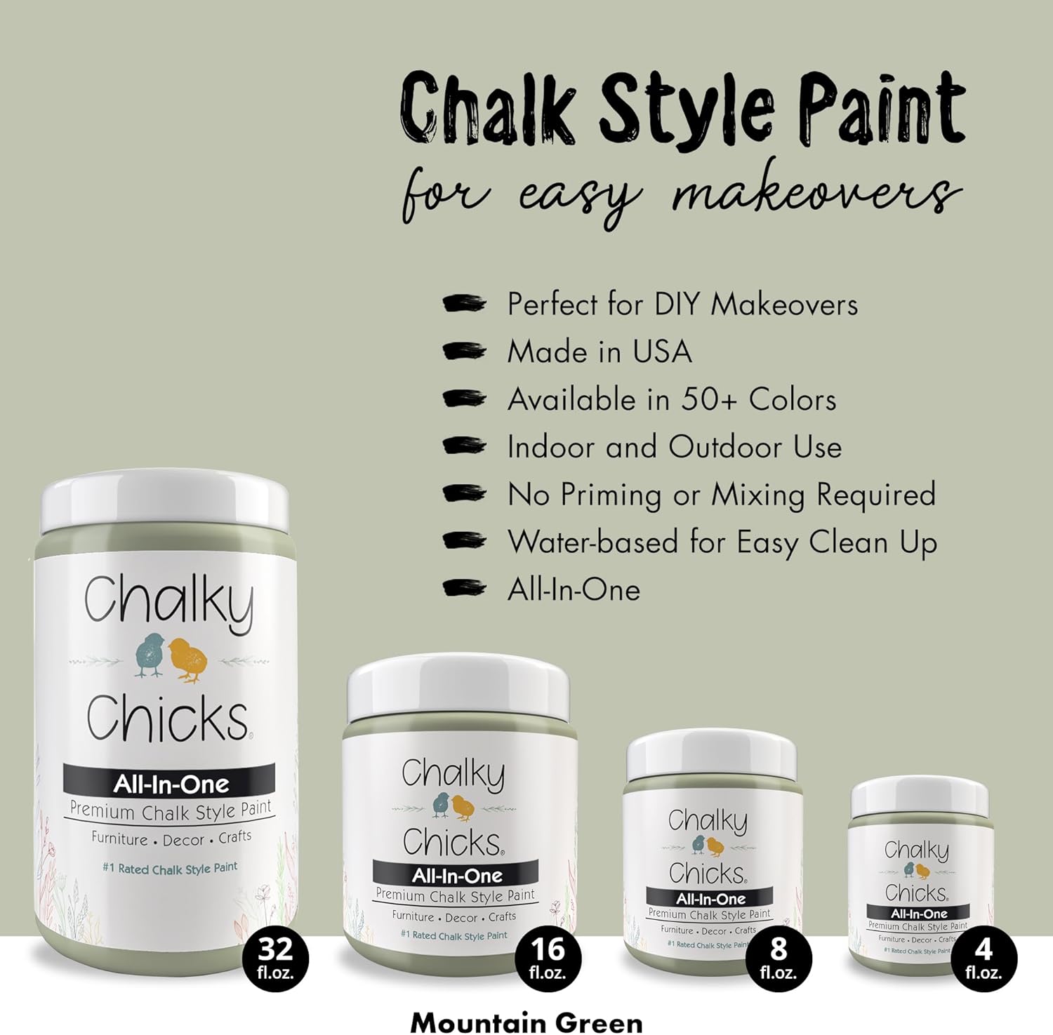 Chalky Chicks 8 Fl Oz Matte Mountain Green (Sage Green) Chalk Paint for Furniture Without Sanding - No Prep Furniture Paint No Sanding All in One for Crafts, Wood, Walls, Cabinet, Metal, Dresser
