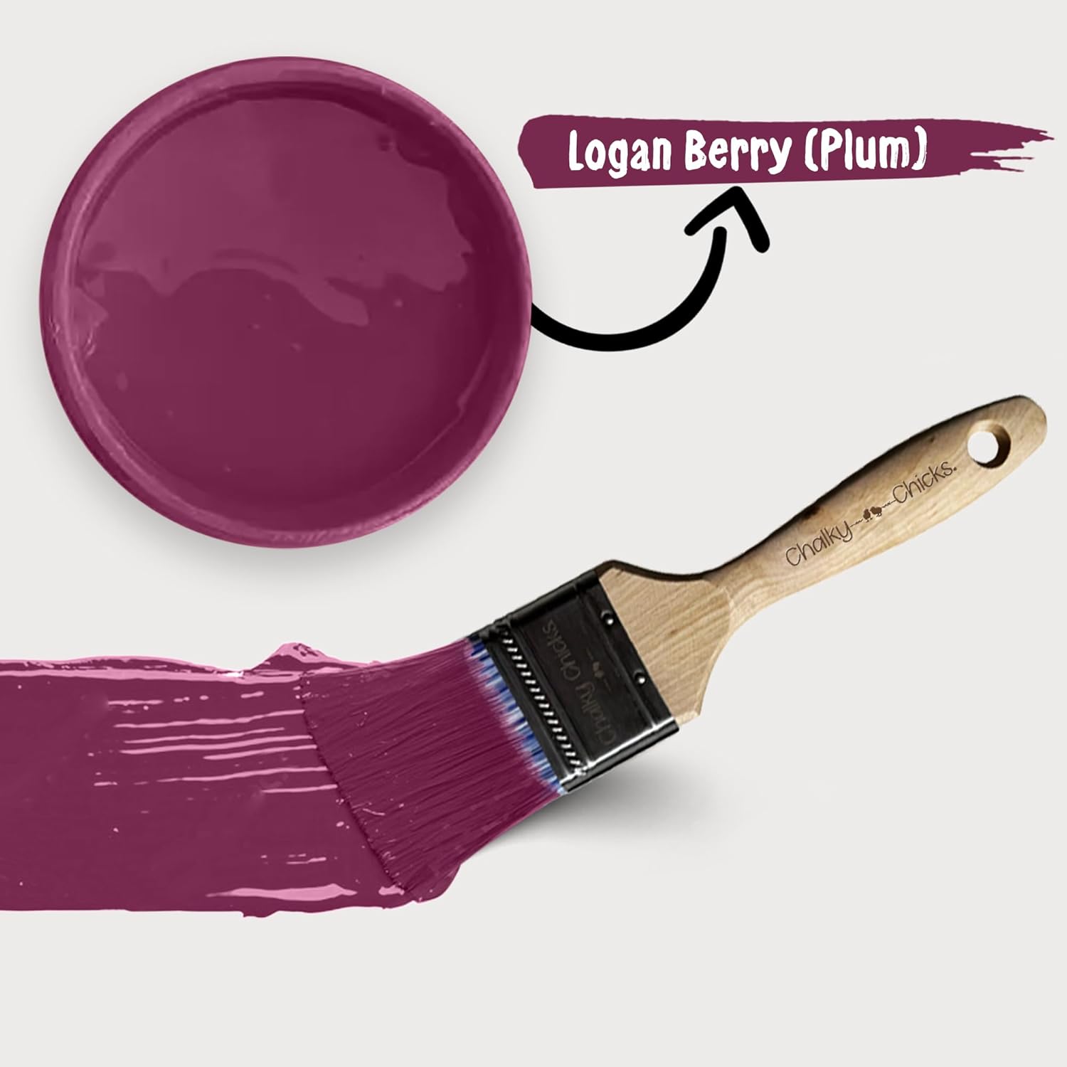 Chalky Chicks All-in-One Chalk Paint for Furniture or Cabinet - 8 Fl Oz - Matte Finish Logan Berry (Plum) for Metal, Wood Furniture Paint - No Sanding All-in-One for Home Decor & Crafts, USA Made