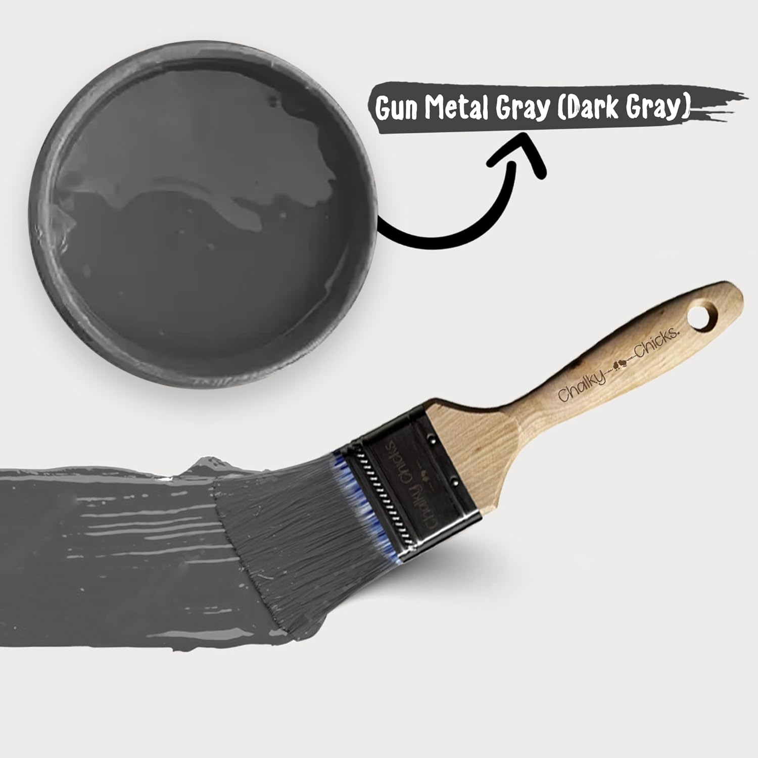 Chalky Chicks All-in-One Chalk Paint for Furniture or Cabinet -8Fl Oz -Matte Finish Gun Metal Gray (Dark Gray) for Metal, Wood Furniture Paint - No Sanding All-in-One for Home Decor & Crafts, USA Made