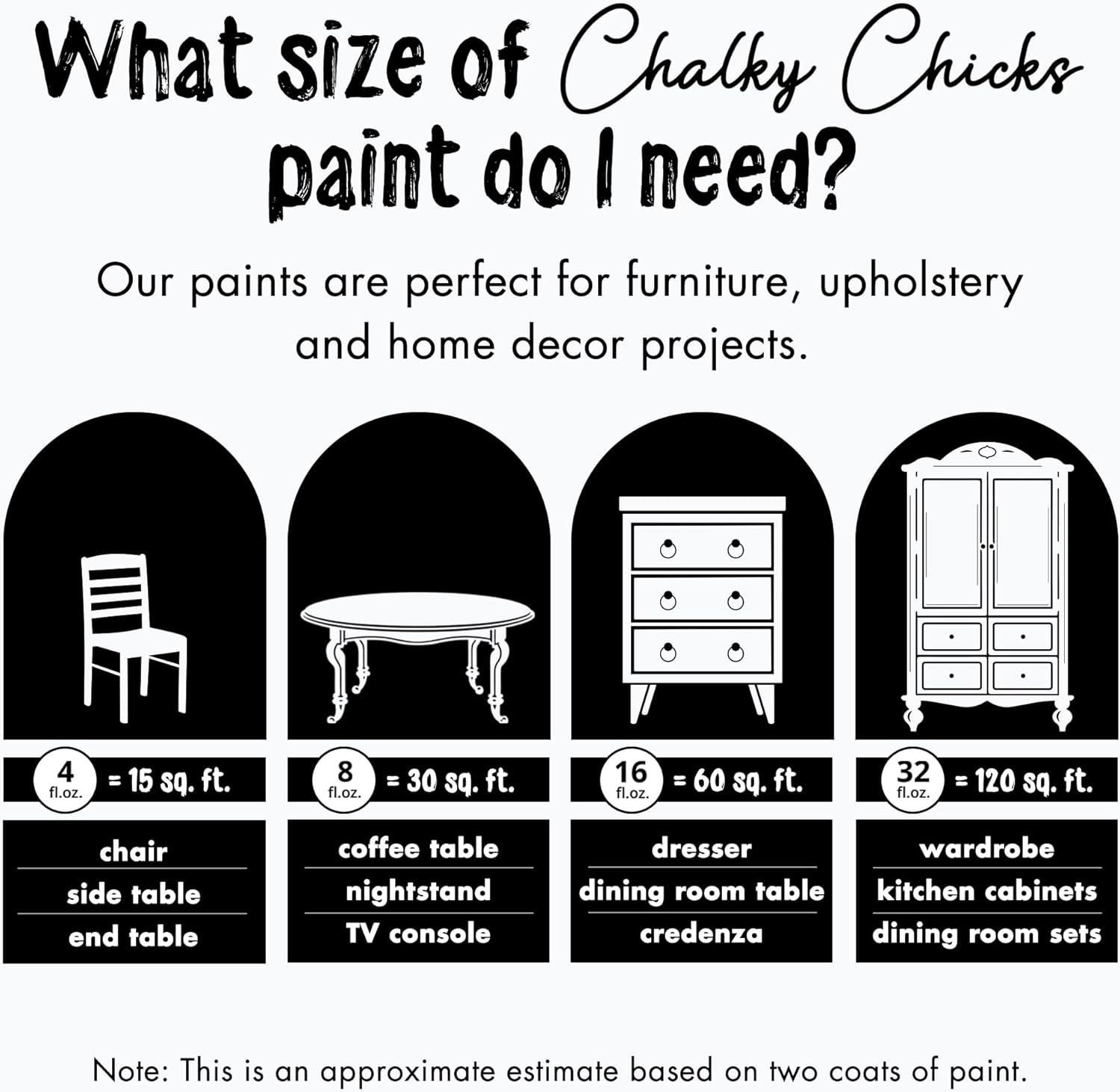 - TRANSFORM FURNITURE AND HOME DECOR WITH EASE: Chalky Chicks will save you time, money, and hassle. No sanding, priming, or multiple coats needed—just start painting your furniture with our cabinet paint no sanding or priming. Our paint is suitable for wood, metal, concrete, textiles, laminate, and more. Whether you prefer navy blue chalk paint, light blue paint, or green chalk paint, our chalk paint for furniture transforms any space with ease, making it ideal for DIY projects & craft painting.