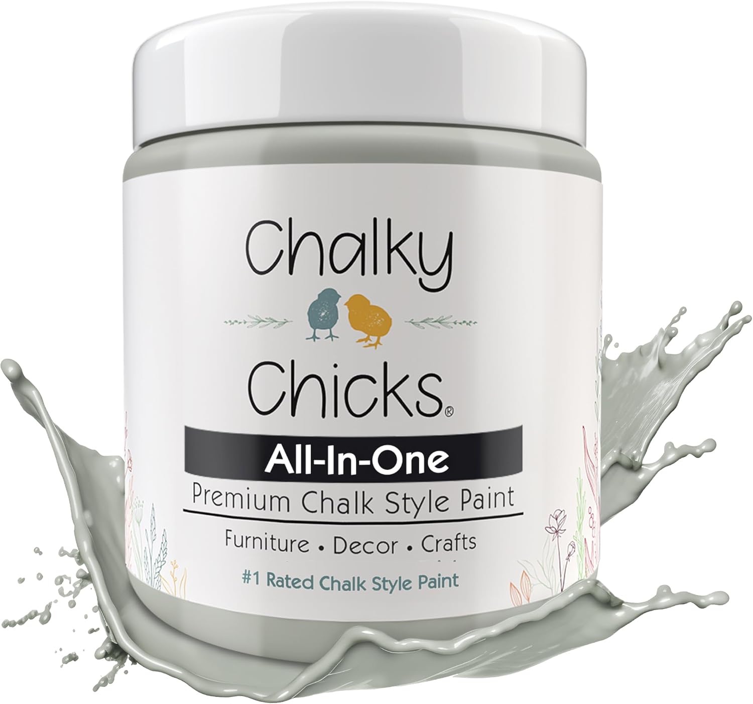 Chalky Chicks All-in-One Chalk Paint for Furniture or Cabinet - 8 Fl Oz - Matte Finish Normandy (Light Gray) for Metal, Wood Furniture Paint - No Sanding All-in-One for Home Decor & Crafts, USA Made