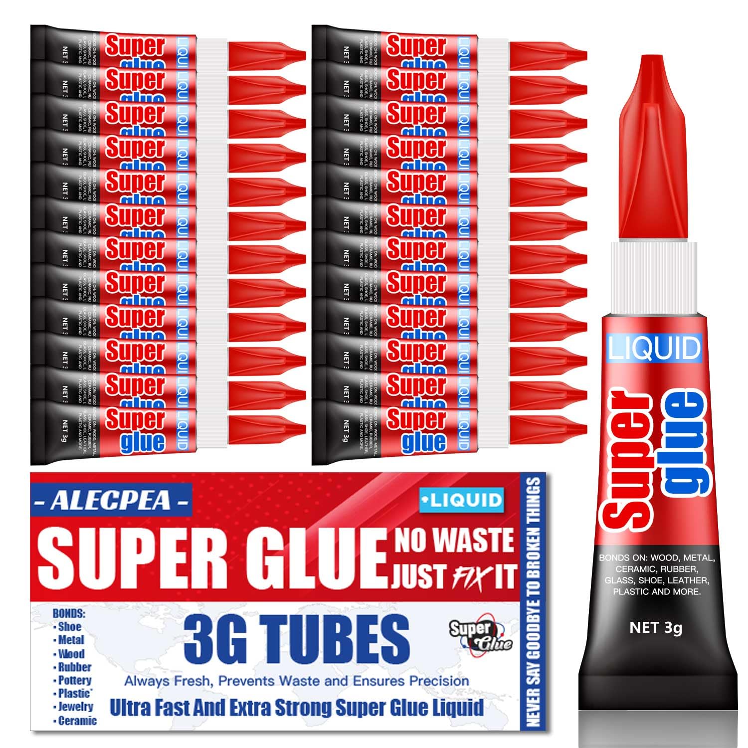 3 Gram (Pack of 24) Single Use Super Glue Liquid, Super Fast, Thin & Strong Adhesive Superglue, Cyanoacrylate Glue for Hard Plastics, DIY Craft, Ceramics, Leather, Metal Etc