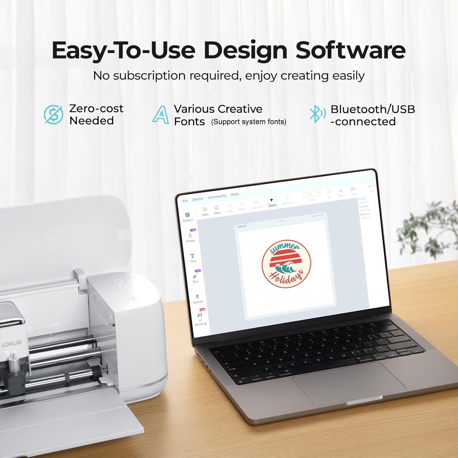 - SAY GOODBYE TO EXPENSIVE APP BILLS: Pairs with a all-access software LOKLiK IdeaStudio, you can use all the features of this cutting machine without subscription fee, get over 50,000 gratis designs and various creative fonts, which are constantly updated. Plus, built-in cutting-edge AI painting feature will help turning your fantasy into personalized designs in seconds. Unleash your creativity without the cost constraints