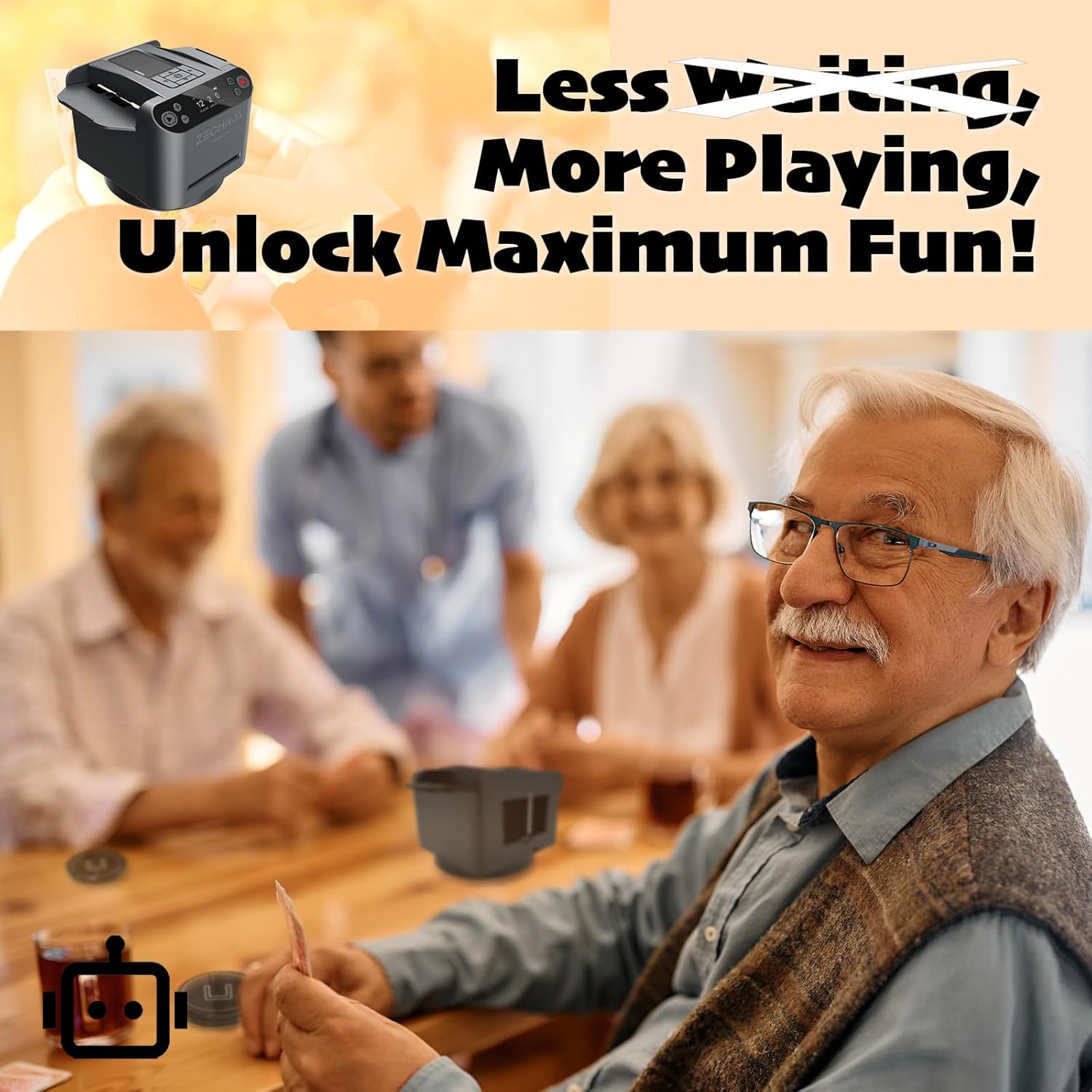 - 【2-in-1 Smart Shuffle and Deal】: -Advanced tech combines card shuffling and dealing in one smart device,ensuring smooth gameplay for up to 12 players; -Save setup time and enjoy more game time,with an easy-to-follow user manual for a quick learning curve; -The robot processing ensures fairness and accuracy in the game