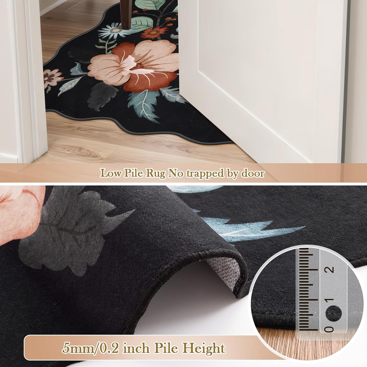 - Boho Floral Rug: Gorgeous and unique rug for living room, no more straight edges, delicate floral pattern adds a splash of color, adds beauty and class to any space, stylish and functional.