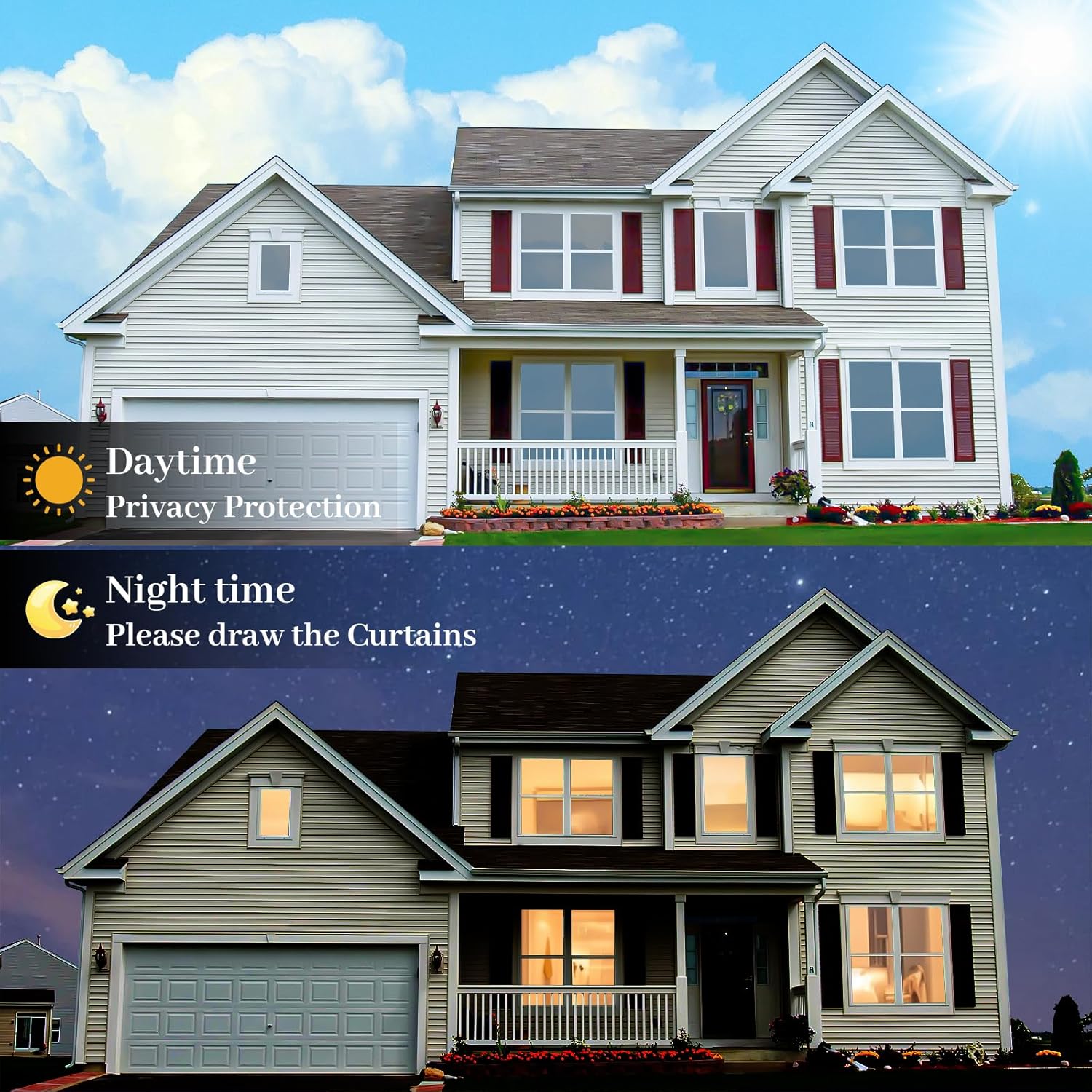 - Daytime Privacy: This window film heat blocking can only protect indoor privacy DURING THE DAY. But at night, when the light inside is stronger than outside, the mirror effect disappears. Remember to draw curtain during night