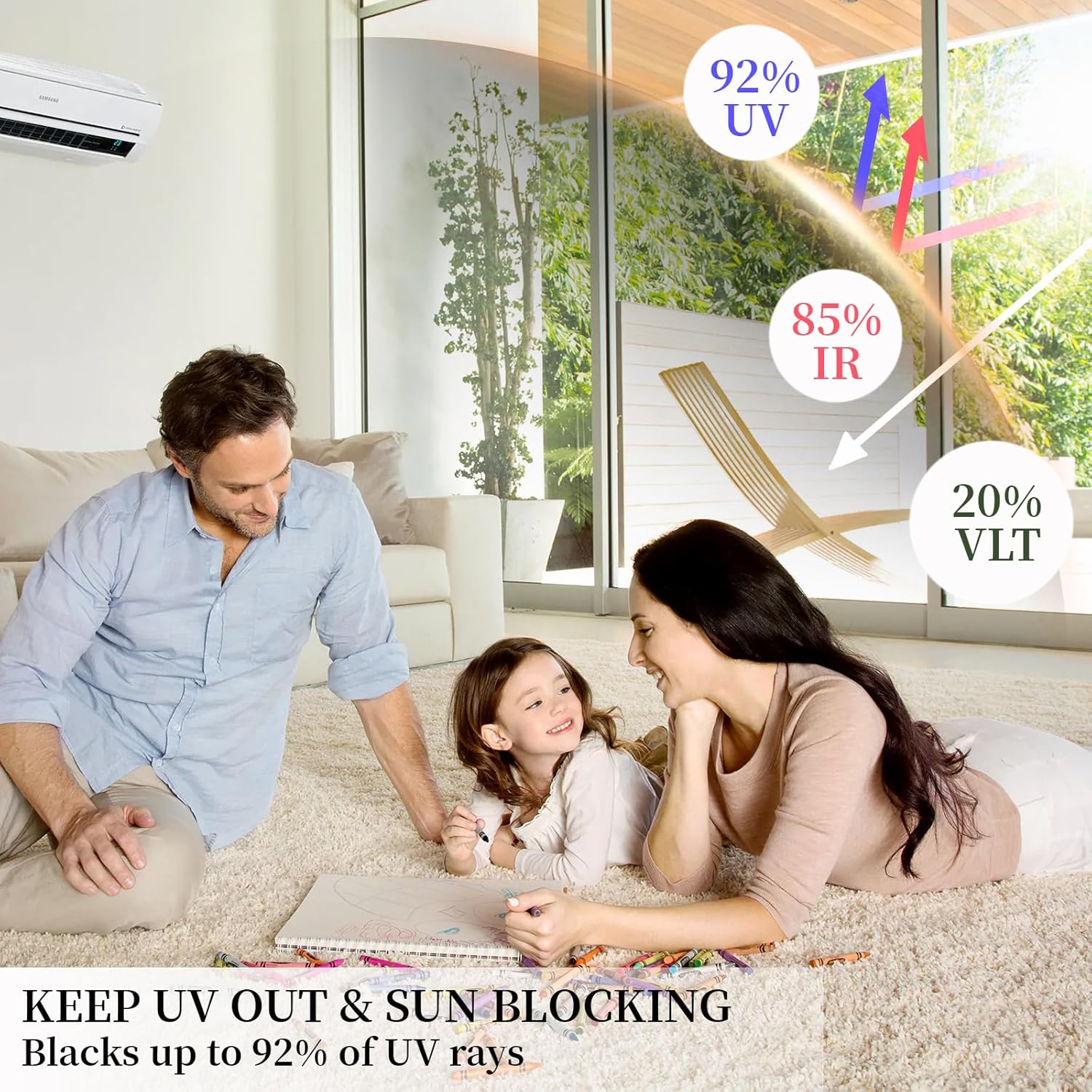 - UV Rejection & Glare Reduction: It effectively blocks 92% of UV rays and 85% of infrared rays, protecting your skin and preventing furniture from fading. Keep your home cool in summer and warm in winter, helping you save money on energy costs and making your home more comfortable
