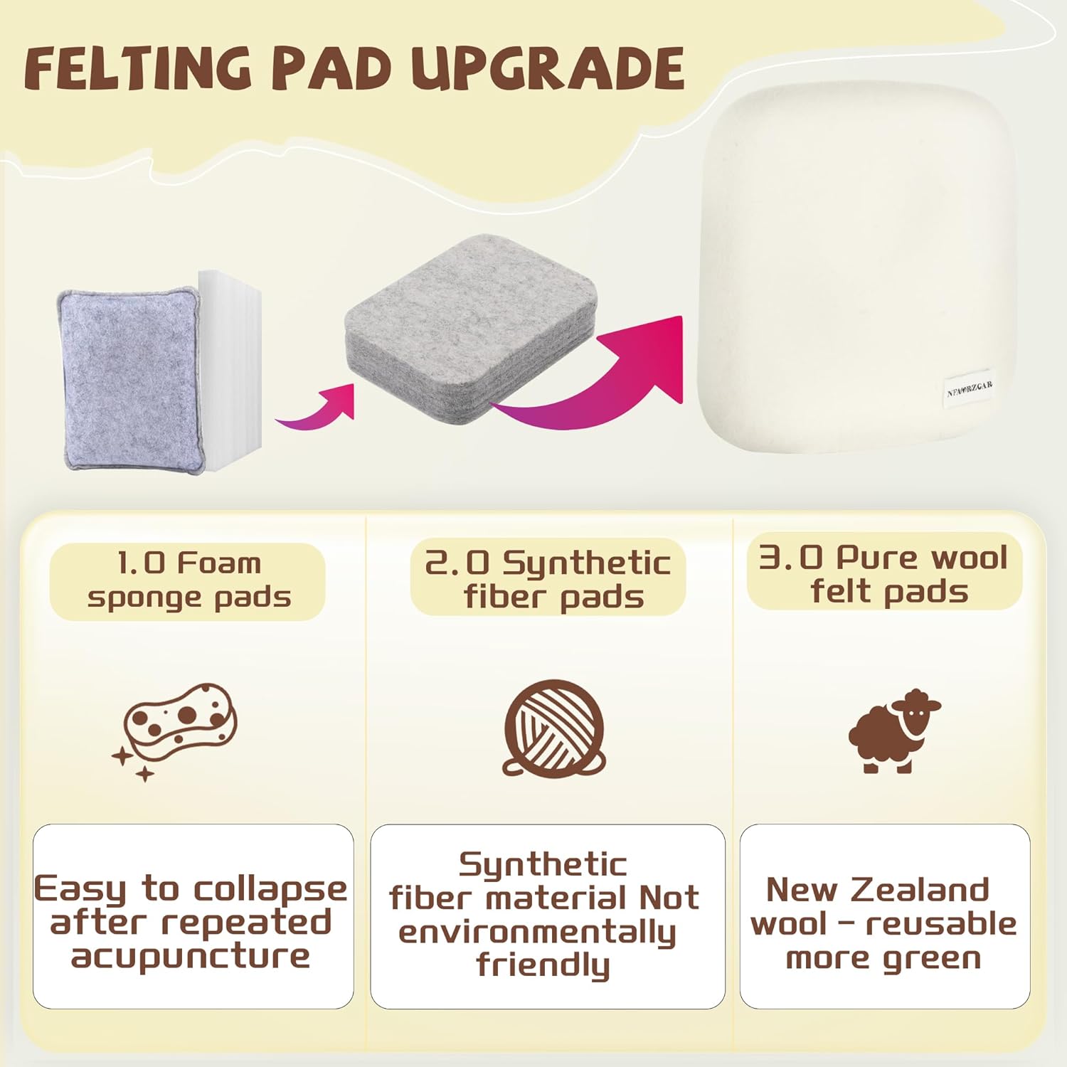 NFAMRZCAR Needle Felting Mat,10x10x1.5 Inch Thick and Firm Needle Felting Pad Natural Wool Mat with 20 Needle 1 Clean Cloth,Clear Instruction