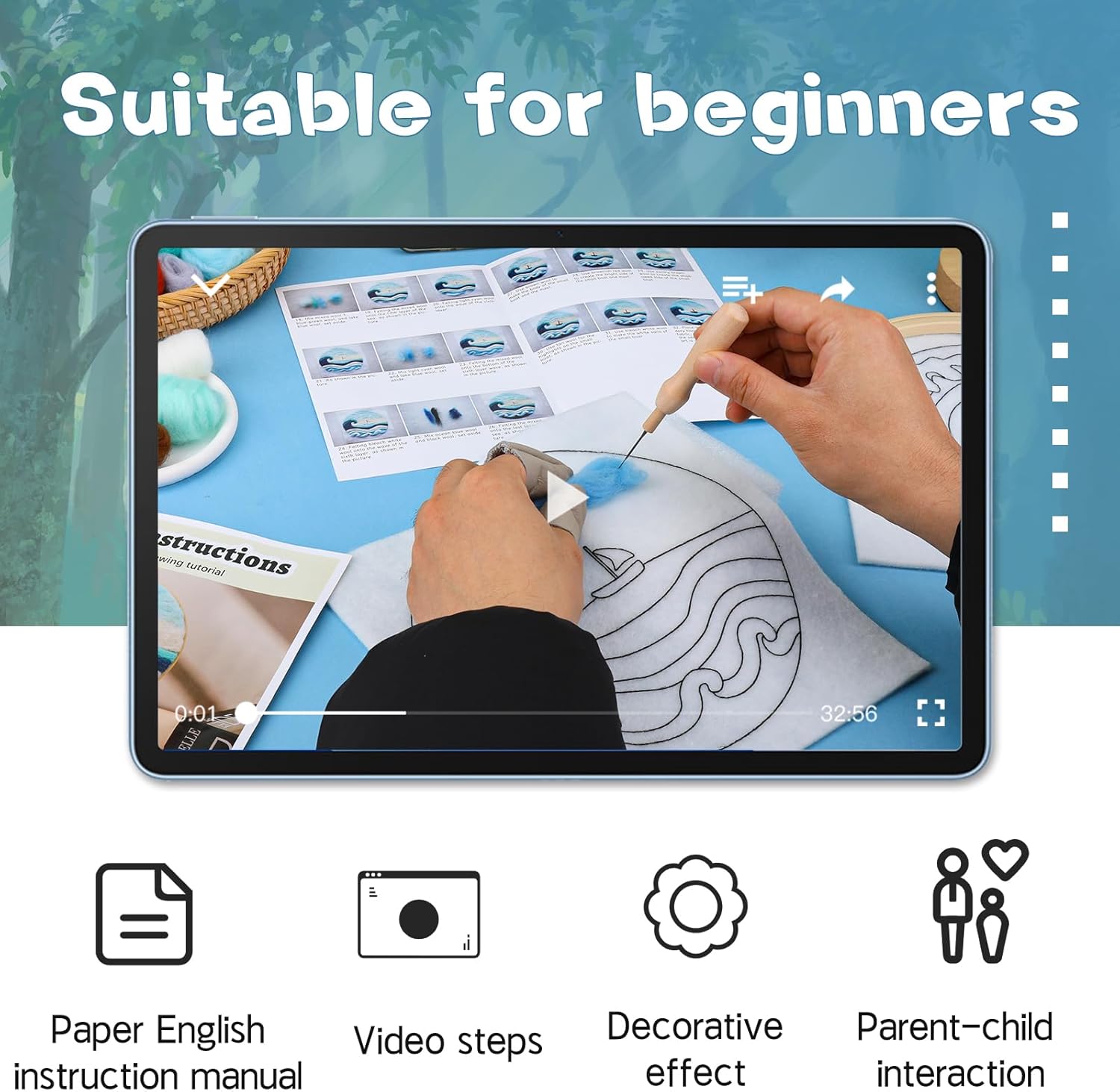 - Easy to Make: The needle felting painting kit is a round wool painting kit with a picture frame. With English instructions and step-by-step videos, you can make a beautiful wave needle felting painting, which is suitable for beginners and wool needle felting lovers