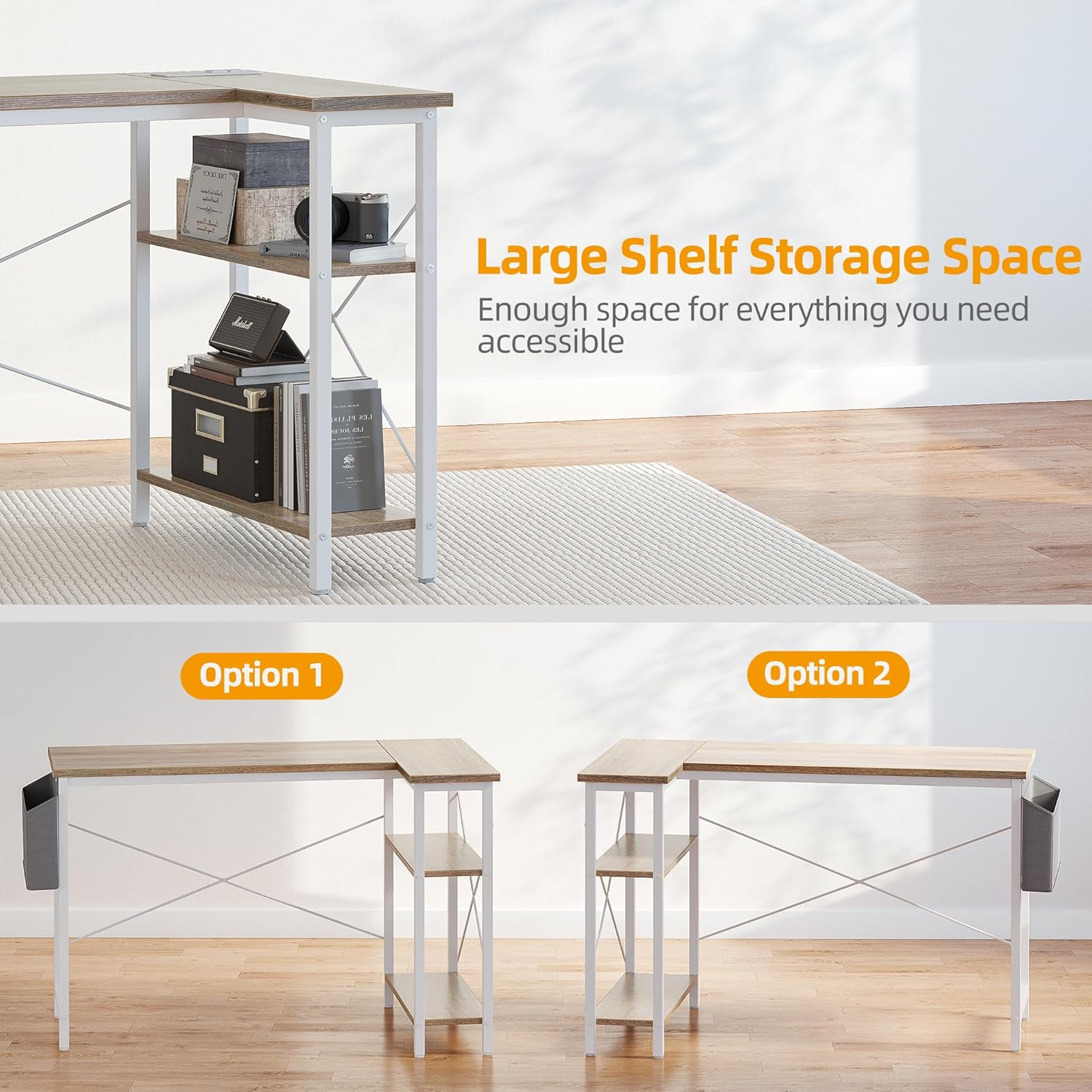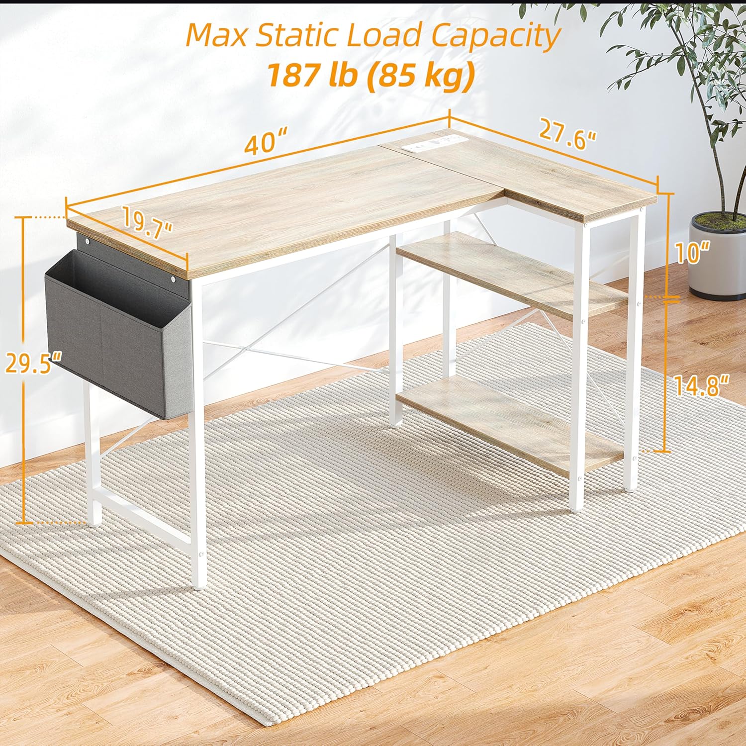 TIQLAB L Shaped Computer Desk with Power Outlets, 40 Inch Small Corner Desk with Reversible Shelves, Gaming Desk Computer Table Study Writing Table for Home Office Bedroom Small Space, Maple