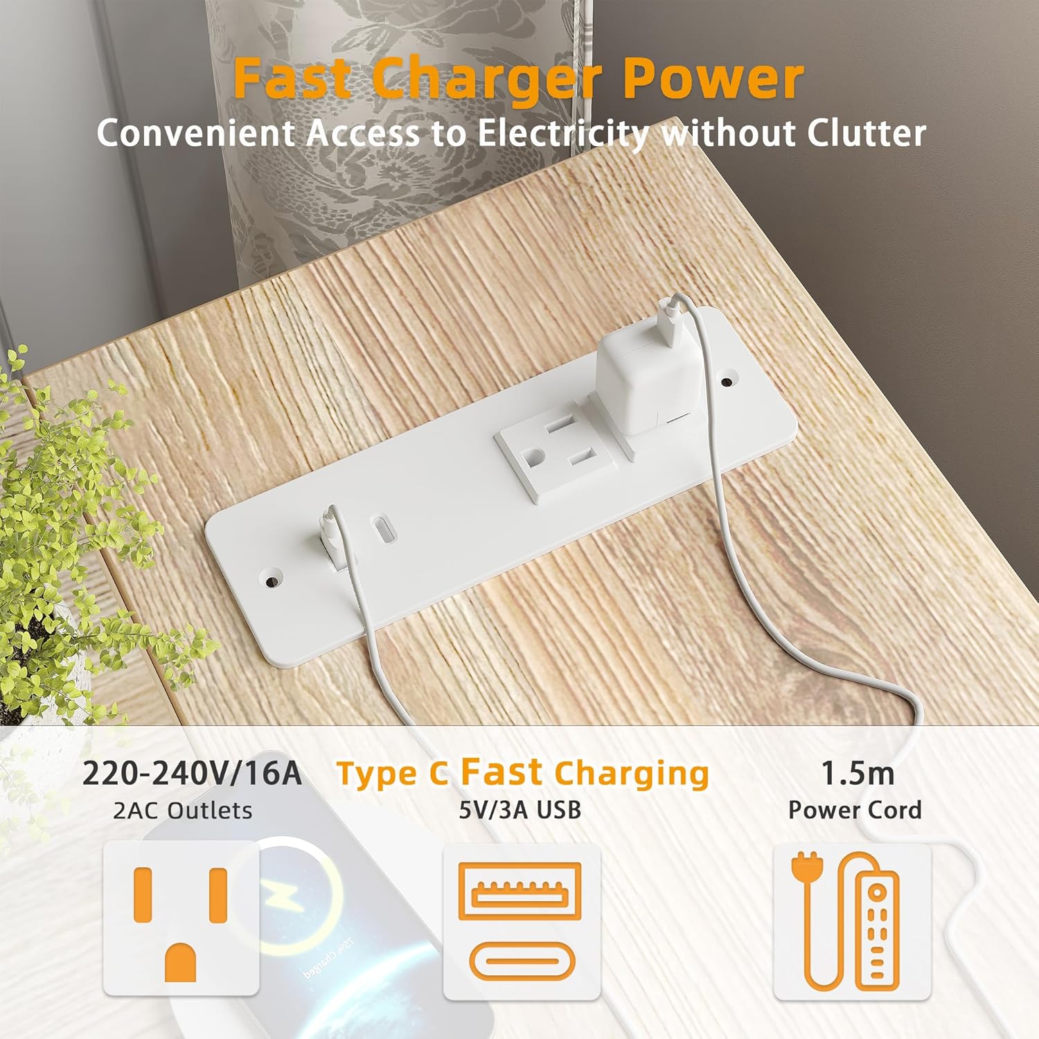 - L Shape Desk with Power Outlets - The l desk has built-in power outlets featuring two AC outlets, one USB port, and one Type-C port, simplifying charging and cutting down on cable clutter.