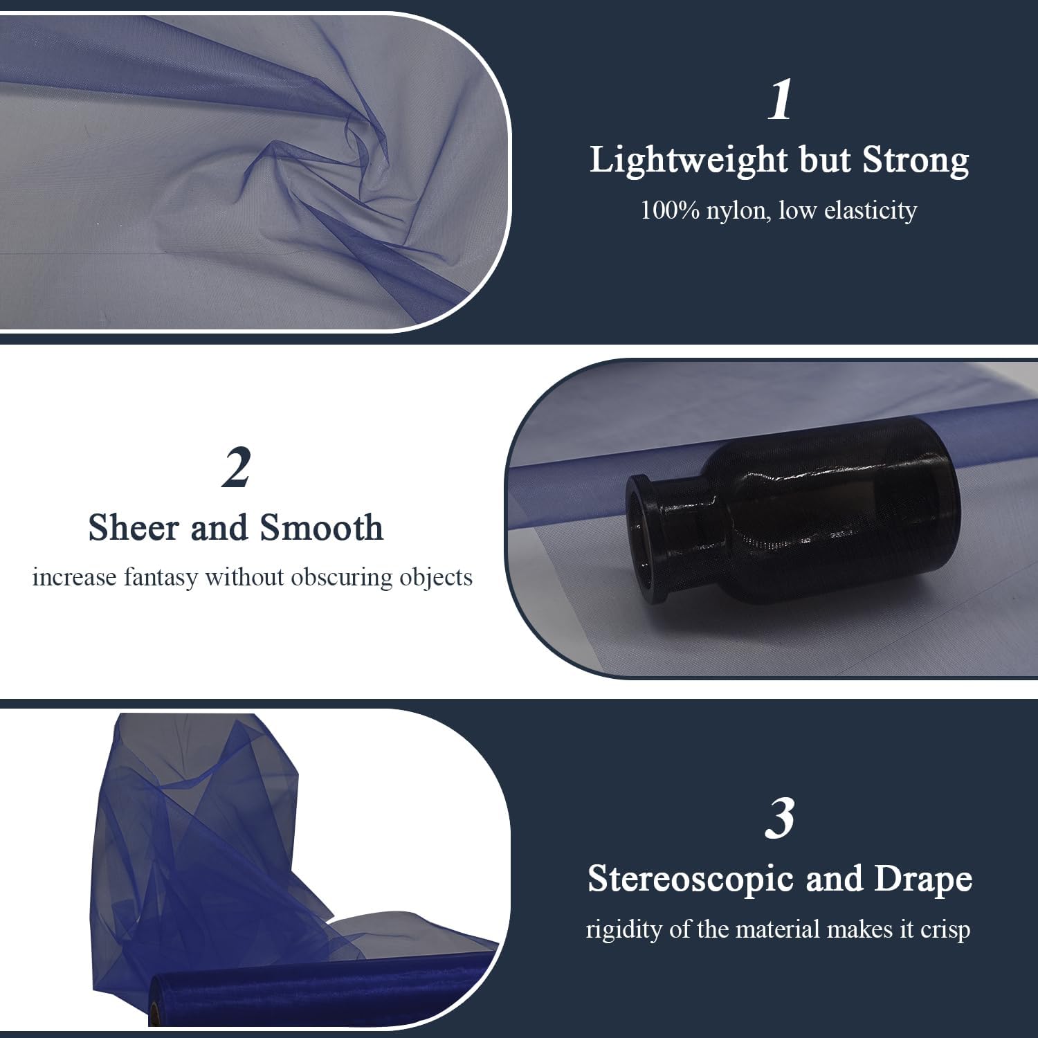 - Versatile Fabric for DIY: It is a very decorative fabric, perfect for creating light skirts, table runner, sheer curtains, veils, capes, sashes. Great for evening wear and home decor, used for prom dresses and holiday party decorations.