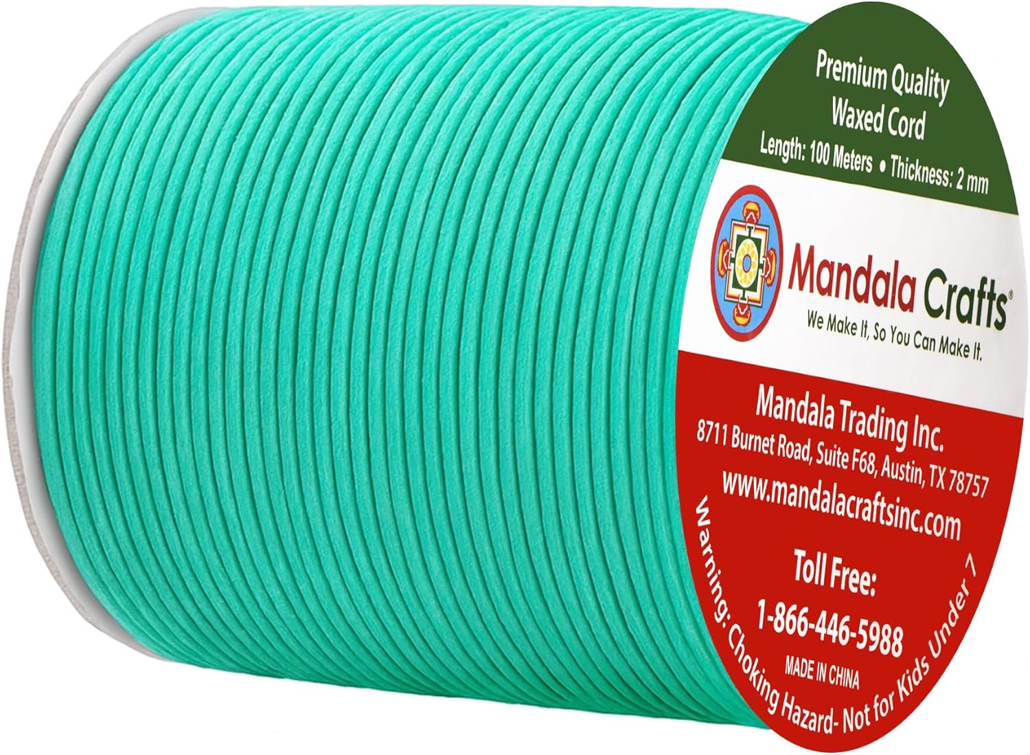 Mandala Crafts 2mm 109 Yards Seafoam Green Cotton Waxed Cord for Jewelry Making Bracelet Cord Waxed String - Beading String Thread Jewelry Cords for Necklaces String