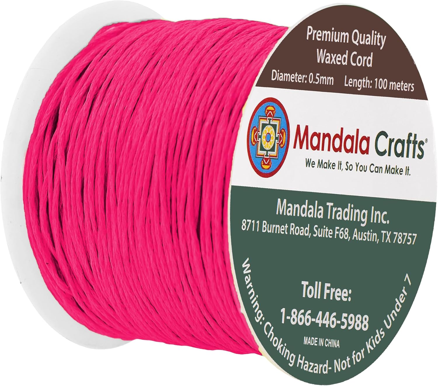 - Bulk Hot Pink Waxed Cord Roll: The non elastic colorfast 0.5mm cotton cord with heat treatable ends is fraying resistant & bleed free. The continuous 3 ply 109 yds long 0.5mm jewelry waxed cord made from 100 percent cotton is easy to cut, tie, knot, or glue.