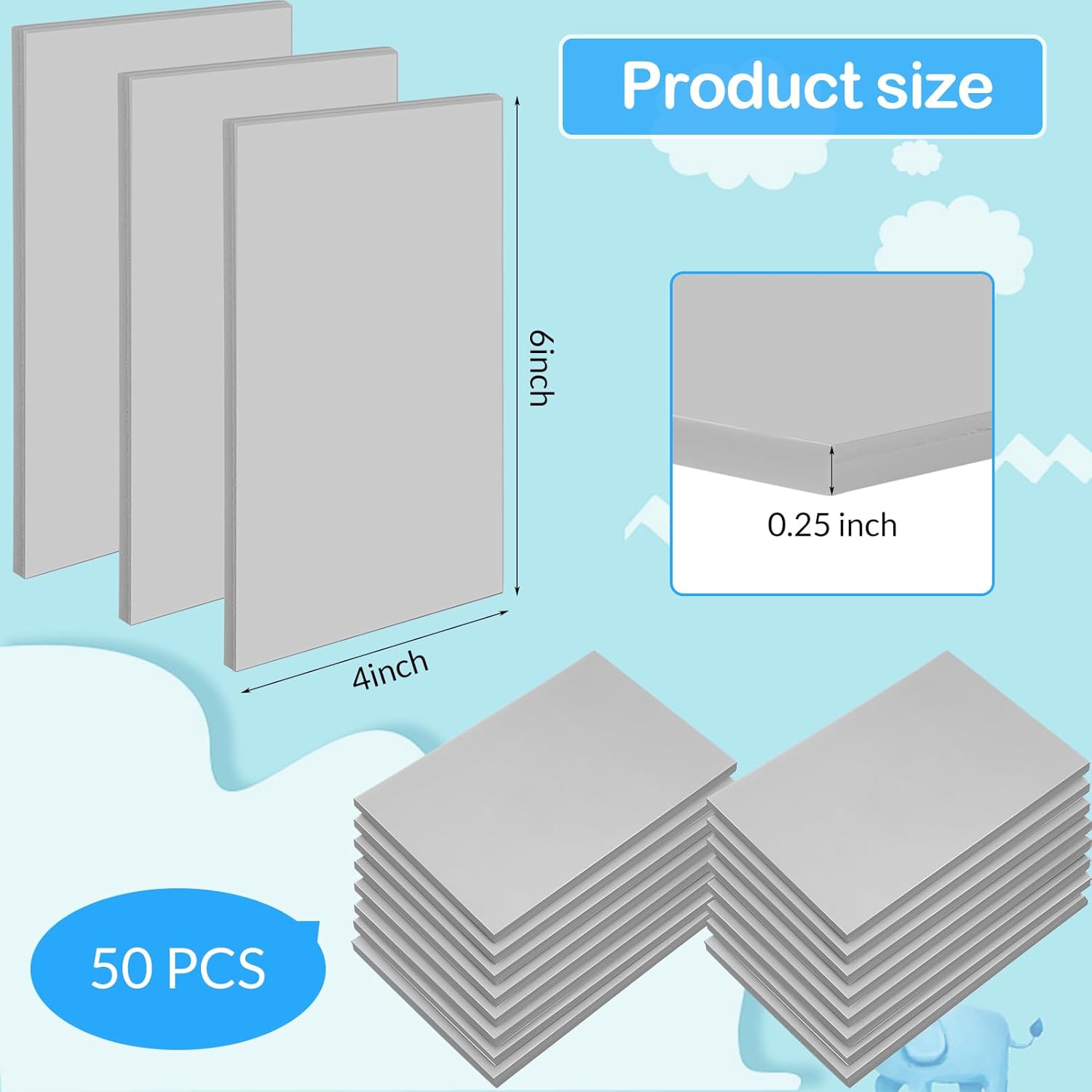 Frienda 50 Pack Rubber Carving Blocks 4 x 6 Inch, Rubber Stamp Carving Blocks for Printmaking, Printing, DIY Craft Project, Soft Block Stamp for Beginners and Professional(Gray)