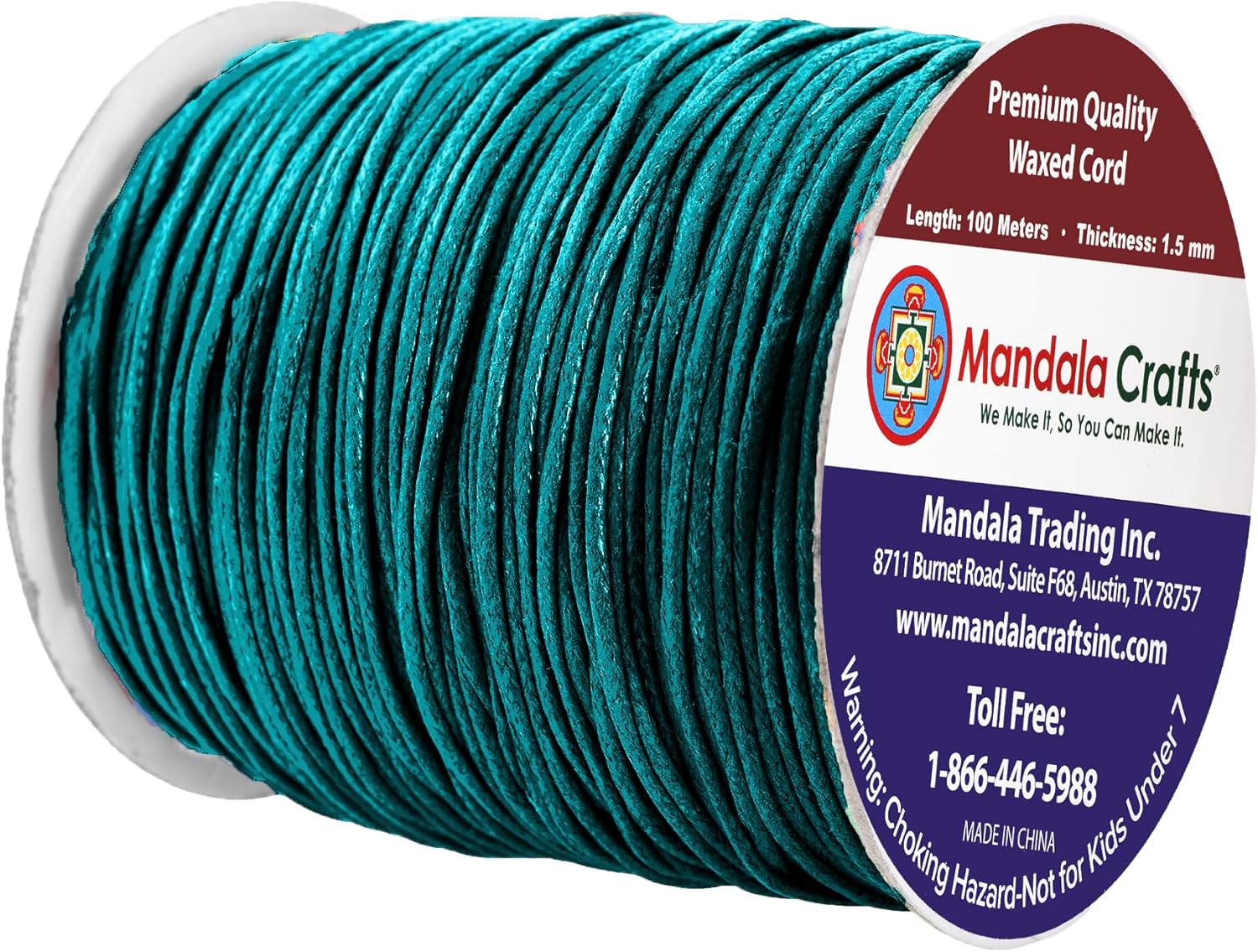 Mandala Crafts 1.5mm 109 Yards Teal Cotton Waxed Cord for Jewelry Making Bracelet Cord Waxed String - Beading String Thread Jewelry Cords for Necklaces String