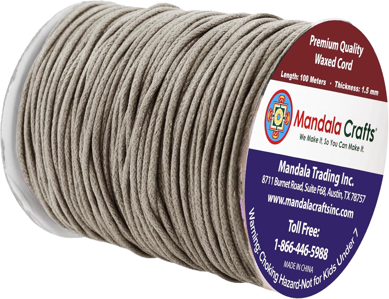 - Bulk Taupe Waxed Cord Roll: The non elastic colorfast 1.5mm cotton cord with heat treatable ends is fraying resistant & bleed free. The continuous 3 ply 109 yds long 1.5mm jewelry waxed cord made from 100 percent cotton is easy to cut, tie, knot, or glue.