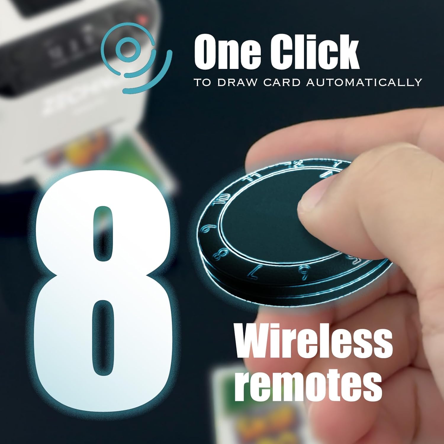 - 【Highly Customized Game and Easy Settings】: -Customizable Dealing Settings:Adjust the dealing distance to fit your game area; -Flexible Dealing Methods:Choose player positions in a full circle or on one side of the table;and explore a lot more options; -One-Click Card Draw;Easily draw cards using the machine’s built-in buttons or the Wireless Draw Buttons (8 included)