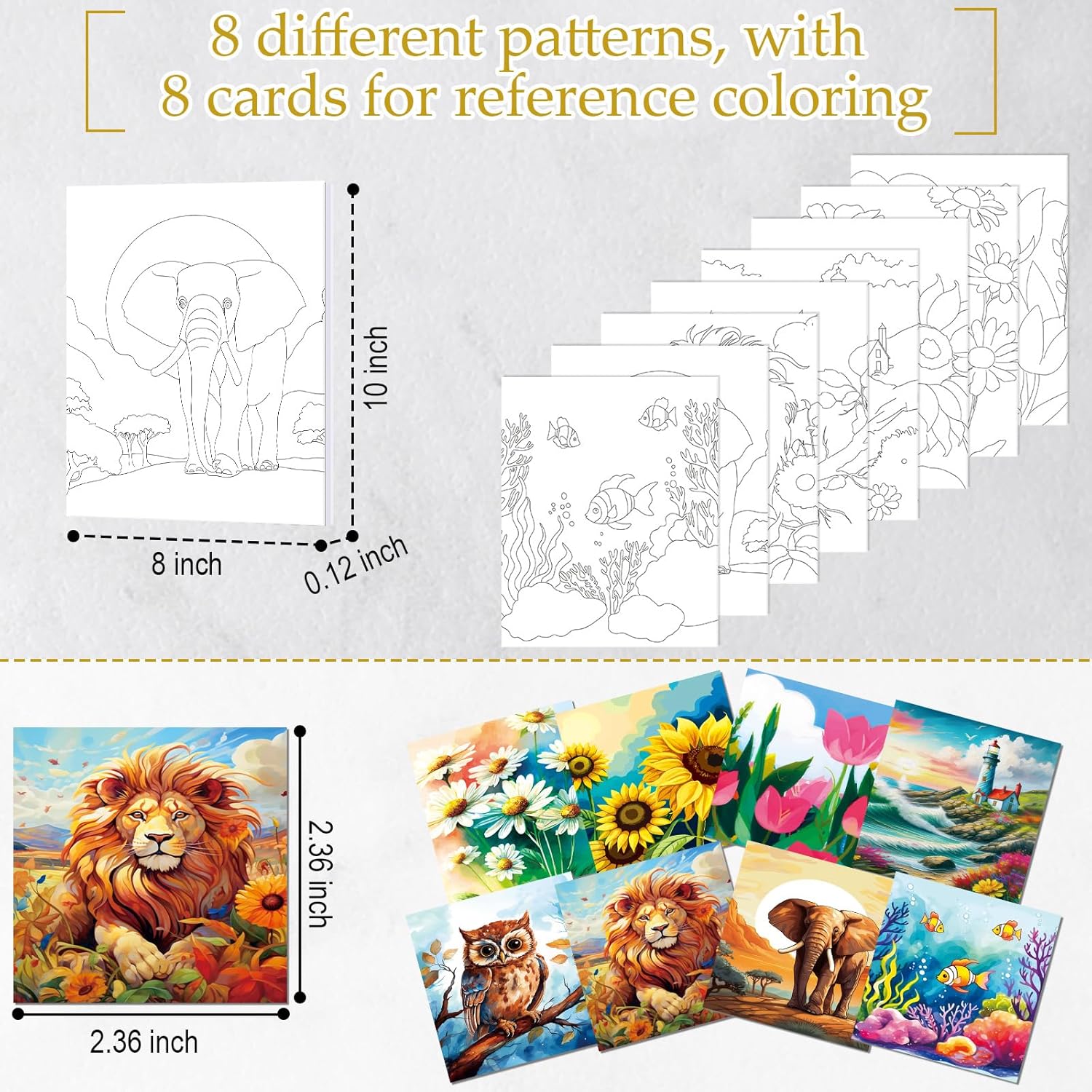 - Reference Matching Cards: you can doodle by following the reference cards provided, and you can explore different color schemes and hues; After the painting is finished, it can be given to friends as a gift, or these canvas paintings can instantly transform your room into an art gallery, can be displayed at home as an ornament
