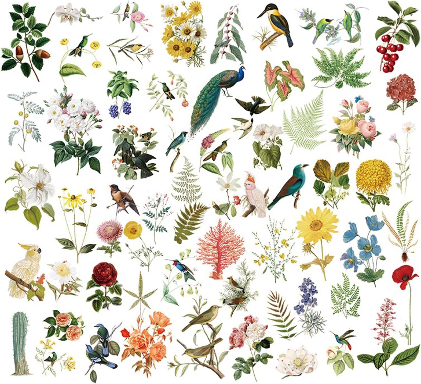 Vintage Vellum Stickers Floral Plants Elements Scrapbooking Supplies Flowers Botanic Natural Translucent Paper Self-Adhesive Junk-Journal Items (Bird Patterns)
