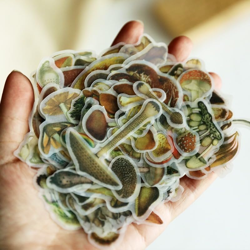 Vintage Vellum Stickers Floral Plants Elements Scrapbooking Supplies Flowers Botanic Natural Translucent Paper Self-Adhesive Junk-Journal Items (Small Mushroom)