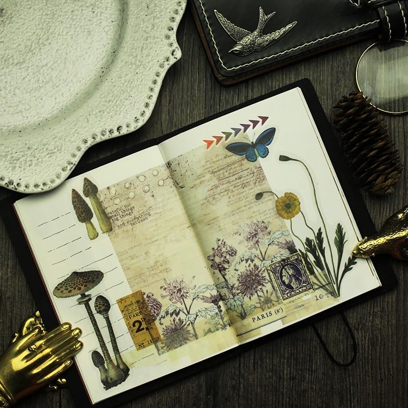 - Vintage Flair: Elevate your scrapbooking and journaling projects with these translucent vellum stickers adorned with exquisite floral and botanical elements.