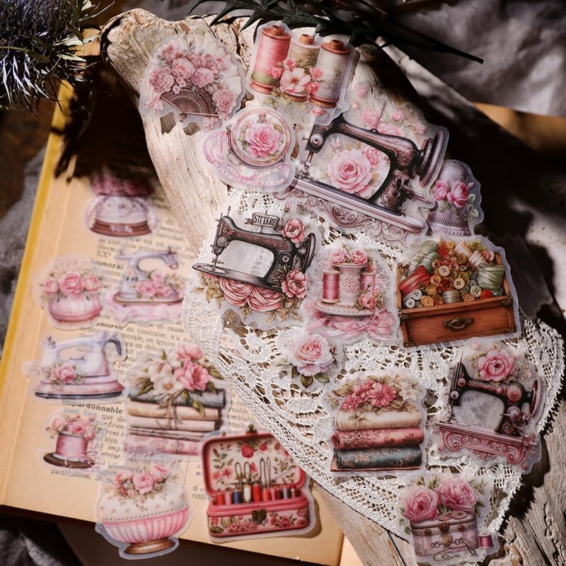 Vintage Vellum Stickers Floral Plants Elements Scrapbooking Supplies Flowers Botanic Natural Translucent Paper Self-Adhesive Junk-Journal Items (Sewing Rose)