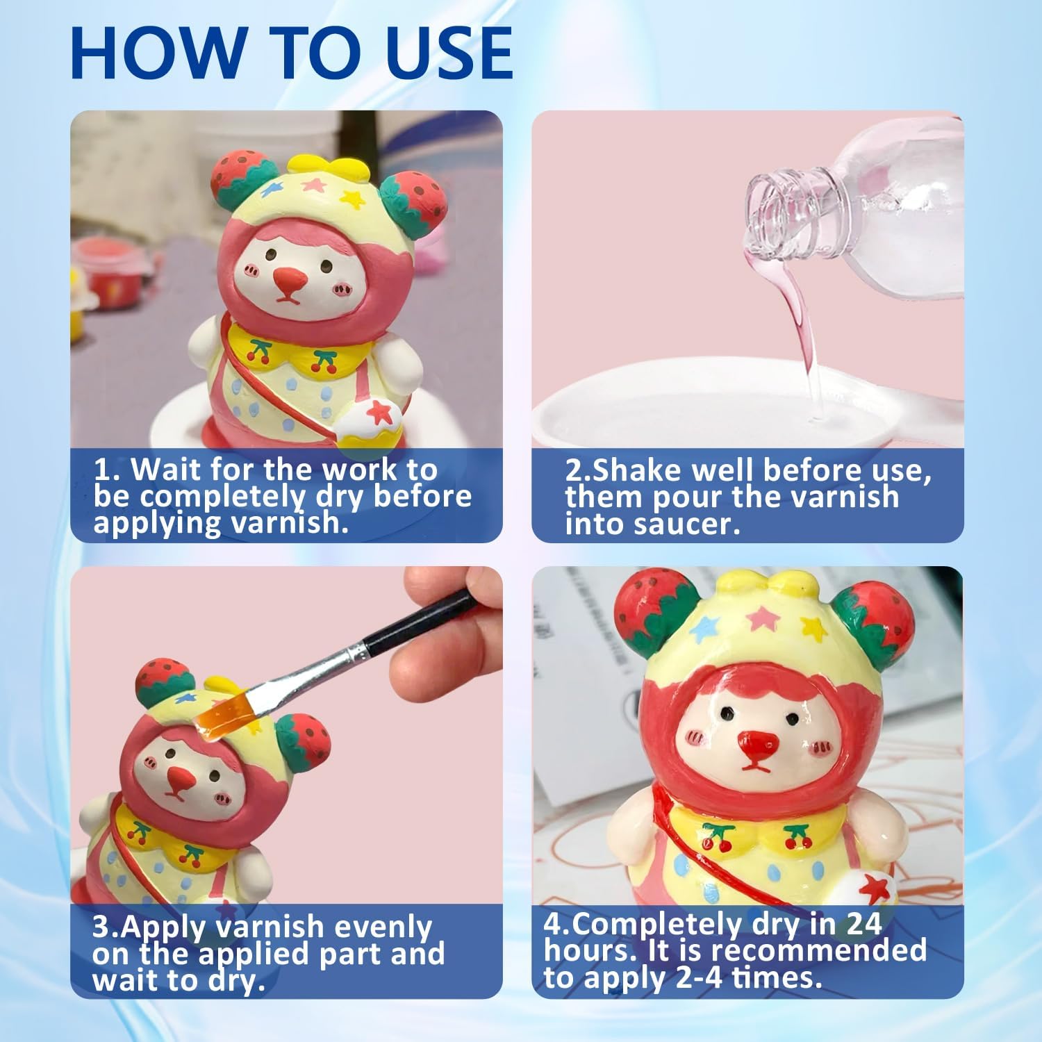 - Easy Application: Simply apply to dry clay, let it dry, and enjoy a flawless, glossy finish β no special tools or techniques needed. Perfect for beginners and experts alike. Note: Wait for the work to be completely dry before applying varnish. Completely dry in 24 hours after apply the varnish. and it is recommended to apply 2-4 times.