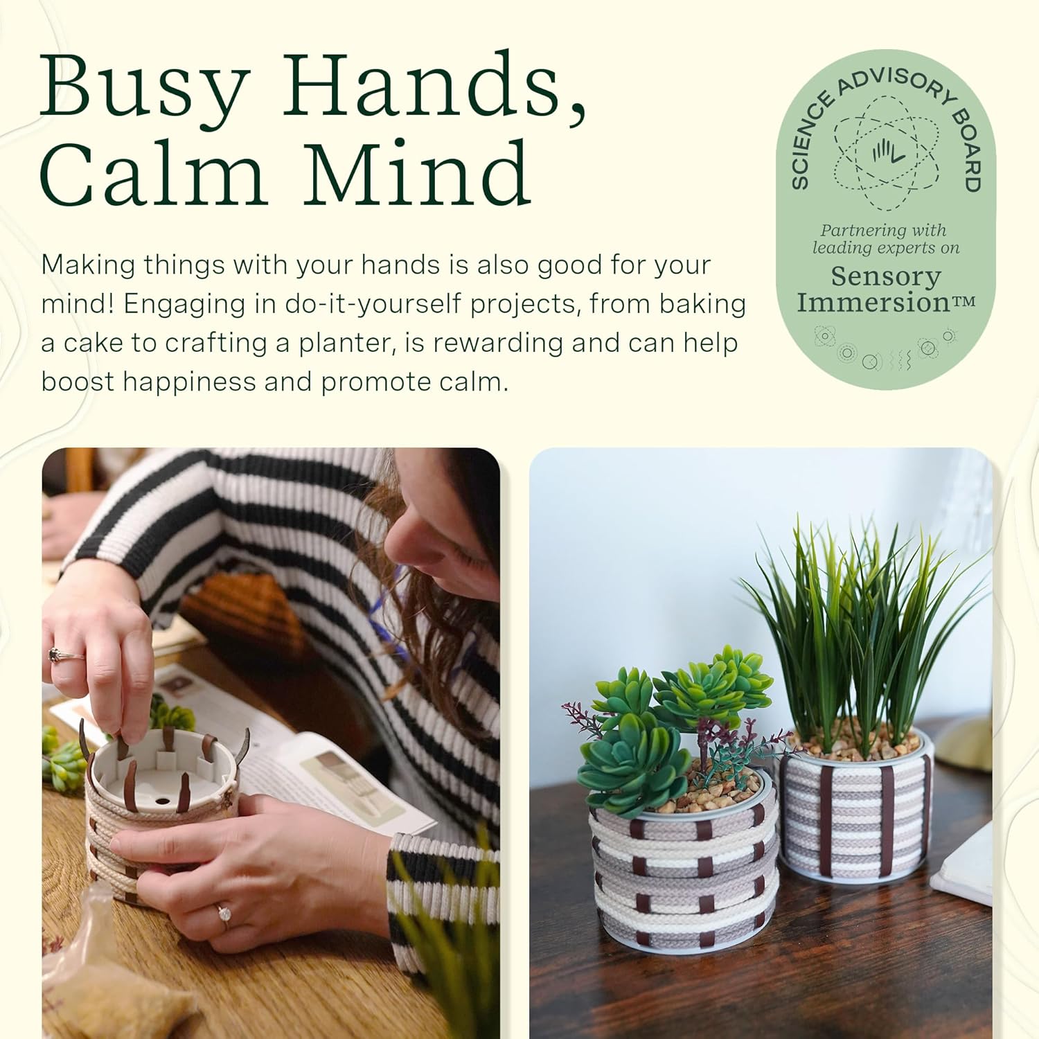 - Busy Hands, Calm Mind: Making things with your hands is also good for your mind! Engaging in do-it-yourself projects, from baking a cake to crafting stunning planters, is rewarding and can help boost happiness and promote calm.
