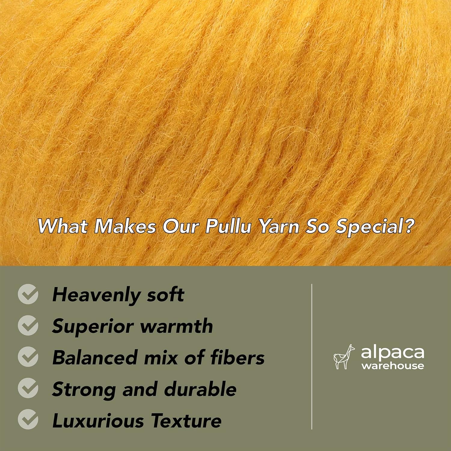 Pullu - Baby Alpaca Merino Wool Yarn Set of 3 Skeins (150 Grams) Worsted Weight - Sourced Directly from Peru - Heavenly Soft and Perfect for Knitting and Crocheting (Golden Yellow)