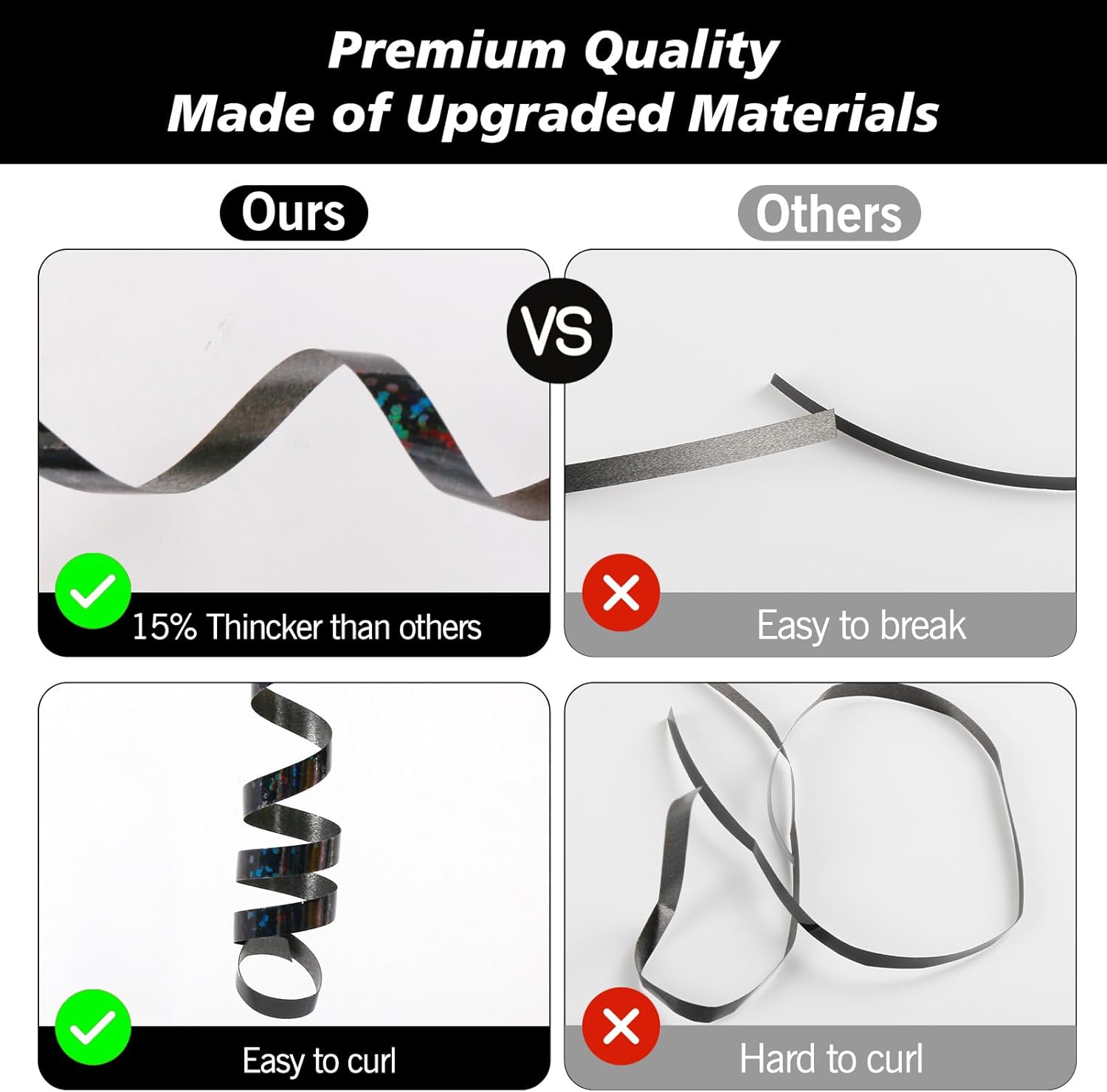 - Sturdy and Thick: The Curling Ribbon for Gift Wrapping is made of upgraded material which provides strong durability and sturdiness. Reusable for multiple party decorating occasions.