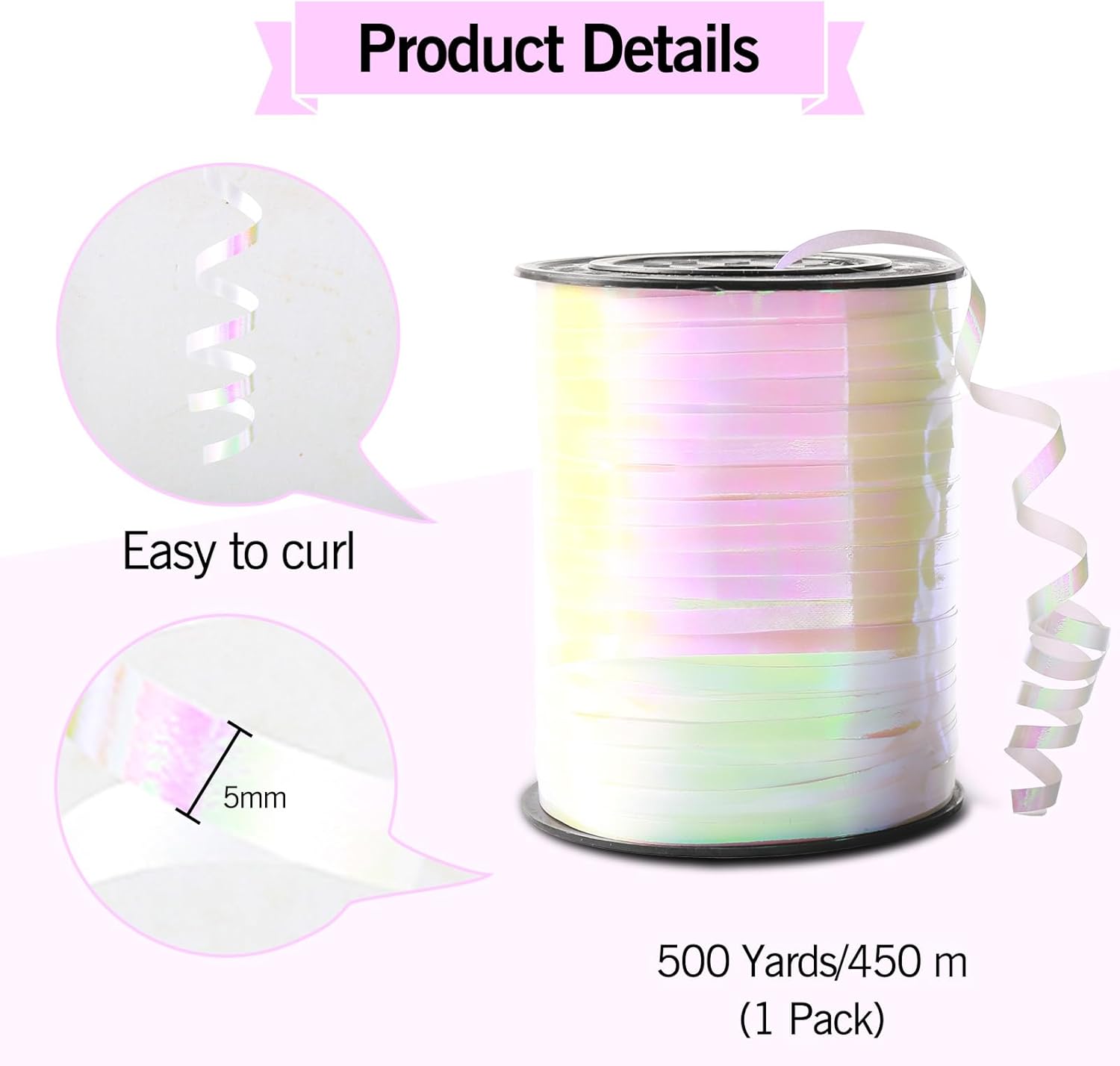 - Extra-Long Roll Curling Ribbon: Our gift wrapping curling ribbon comes with a lot which measures 500 yards 1 roll by 3/16 inch in width (Width: 5mm, Length: 450m). Perfect for gift wrapping, christmas, balloons, florist, flowers decorations. Curly Ribbon is Providing ample length for any project or occasion, enough for you to use in various parties throughout the year.