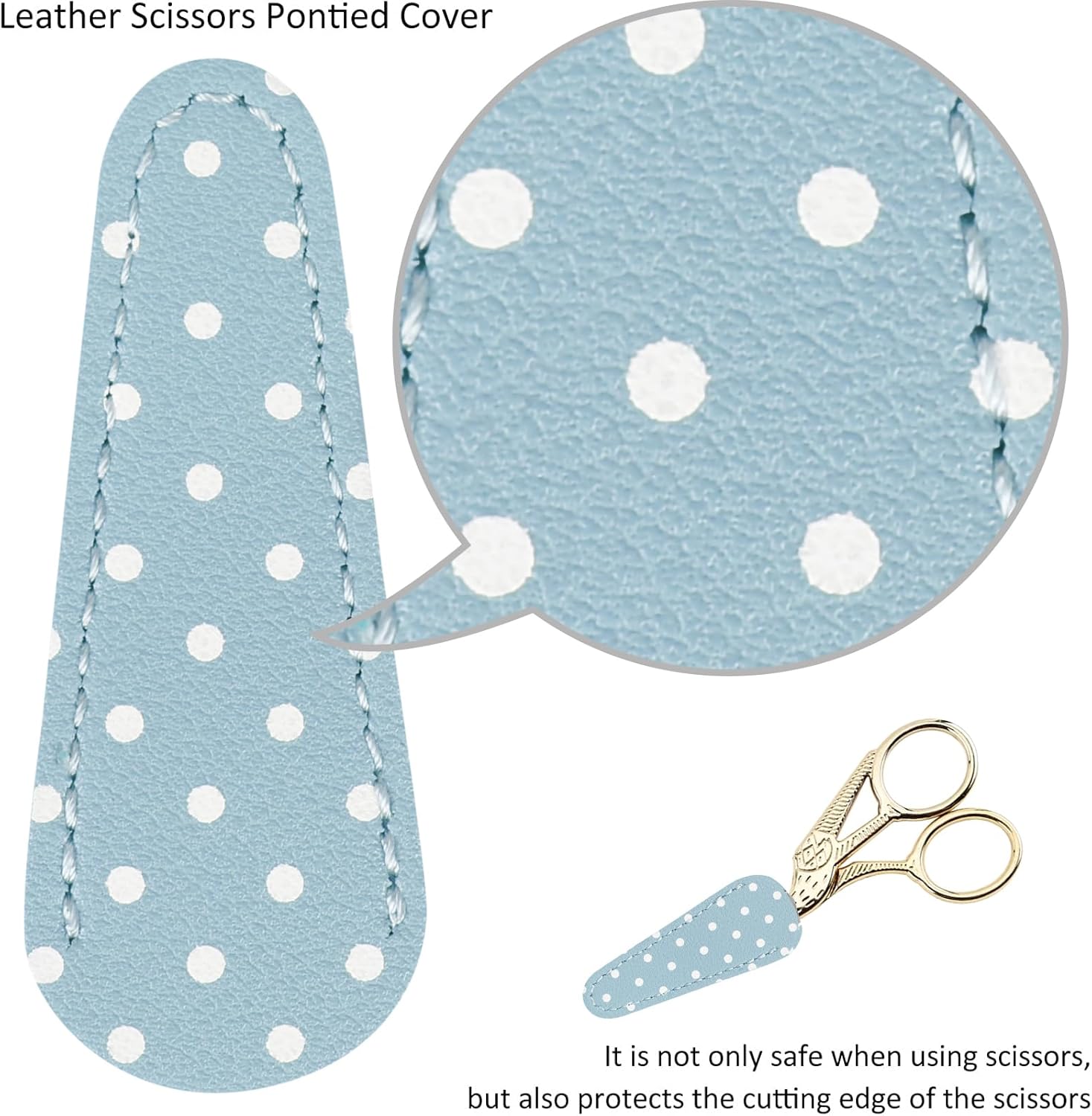 - Scissors with cover:1pc small sewing scissors and 1pc leather scissors safe cover. suitable to be as a delicate gift for friends or families who love embroidery, DIY working, and keep children away from scissors.