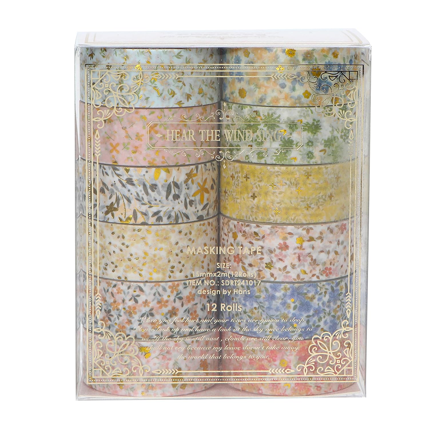 12 Rolls Charming Washi Tape Set Gold Silver Foil Detailing Arts Adhesive Tapes Basic Patterns Decorative Masking Tape Sets for Craft, Kids, Scrapbook, DIY, Gift Wrapping (Spring Bloom)