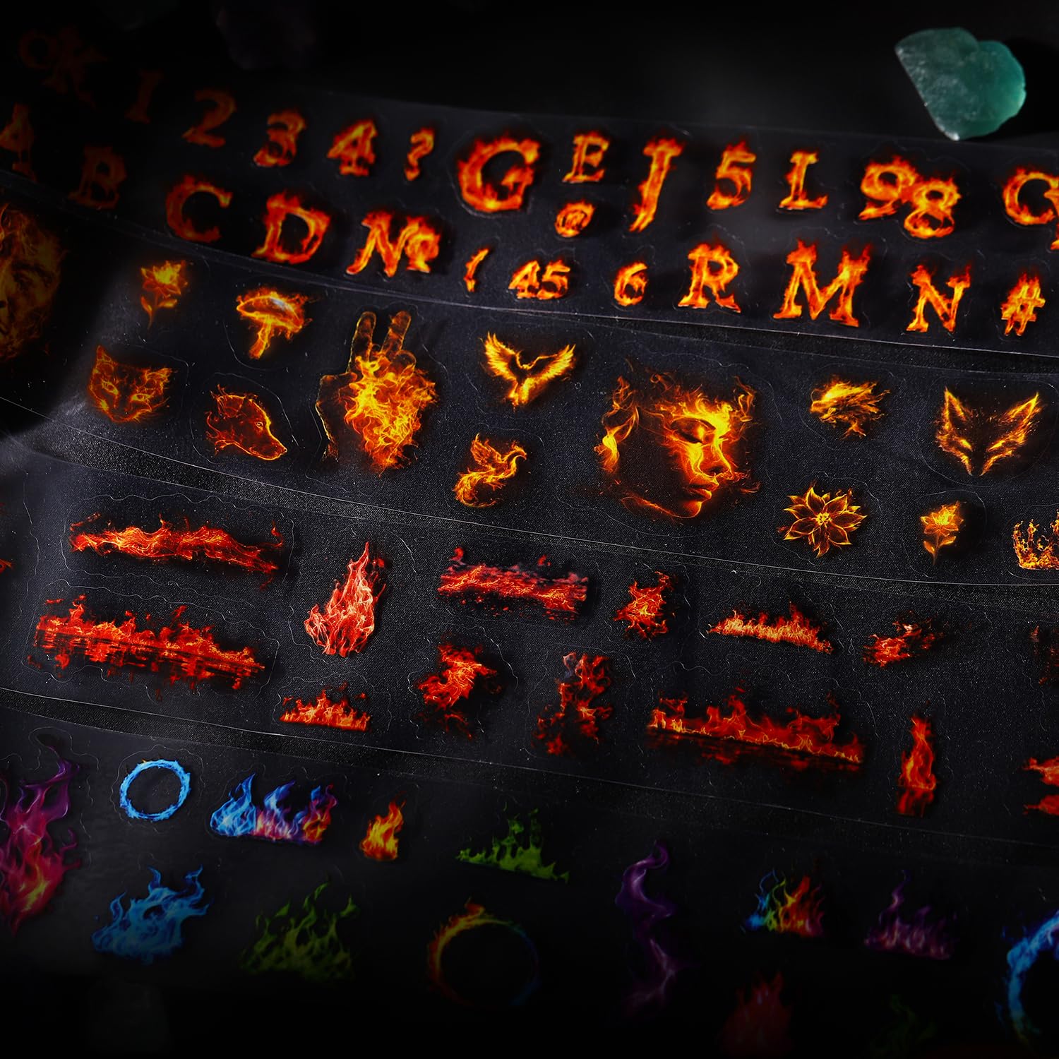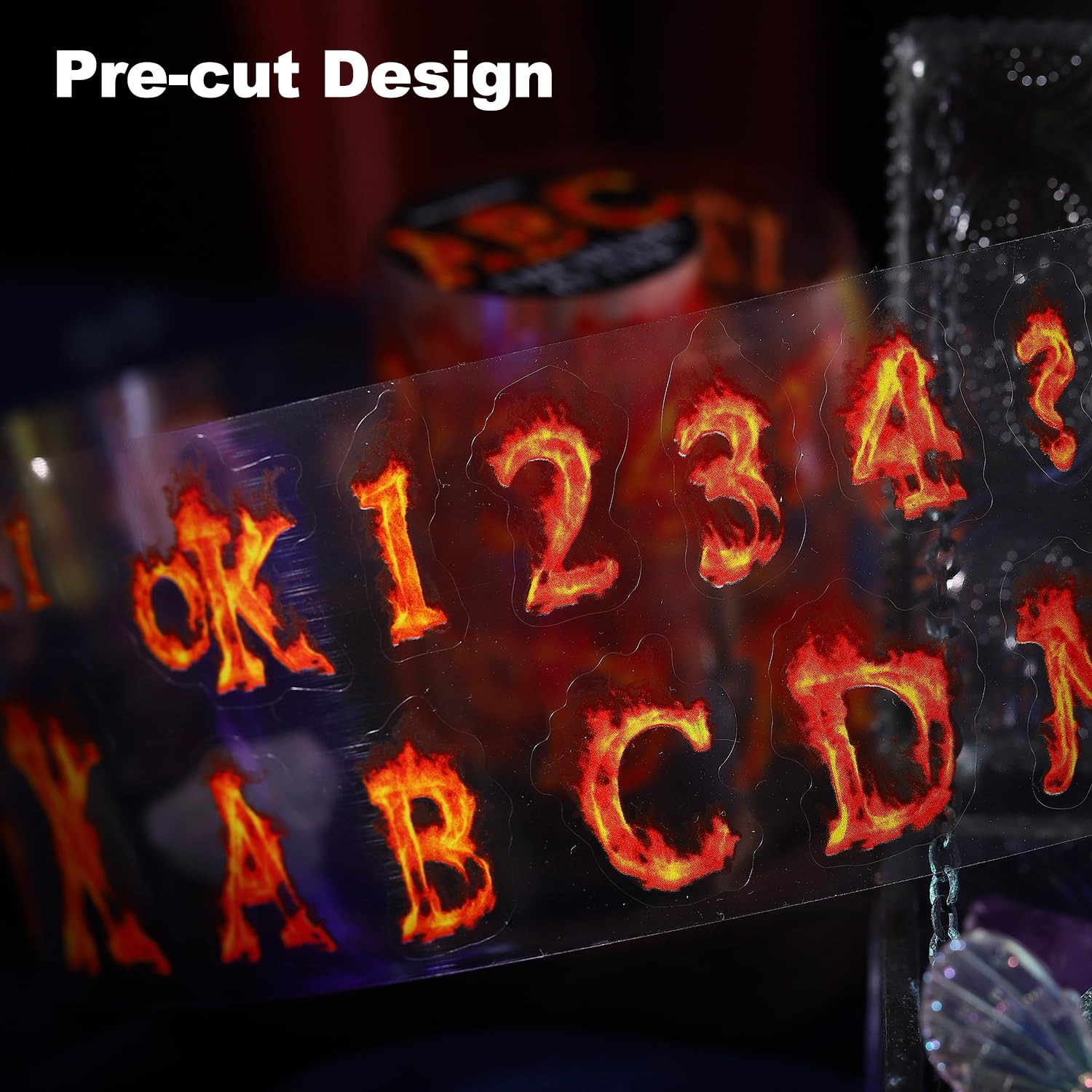 - Vivid Fire-Themed Designs: Each roll features stunning flame patterns, including letters, numbers, and fiery motifs. Ideal for scrapbooking, journaling, DIY crafts, or adding dramatic flair to your stationery projects