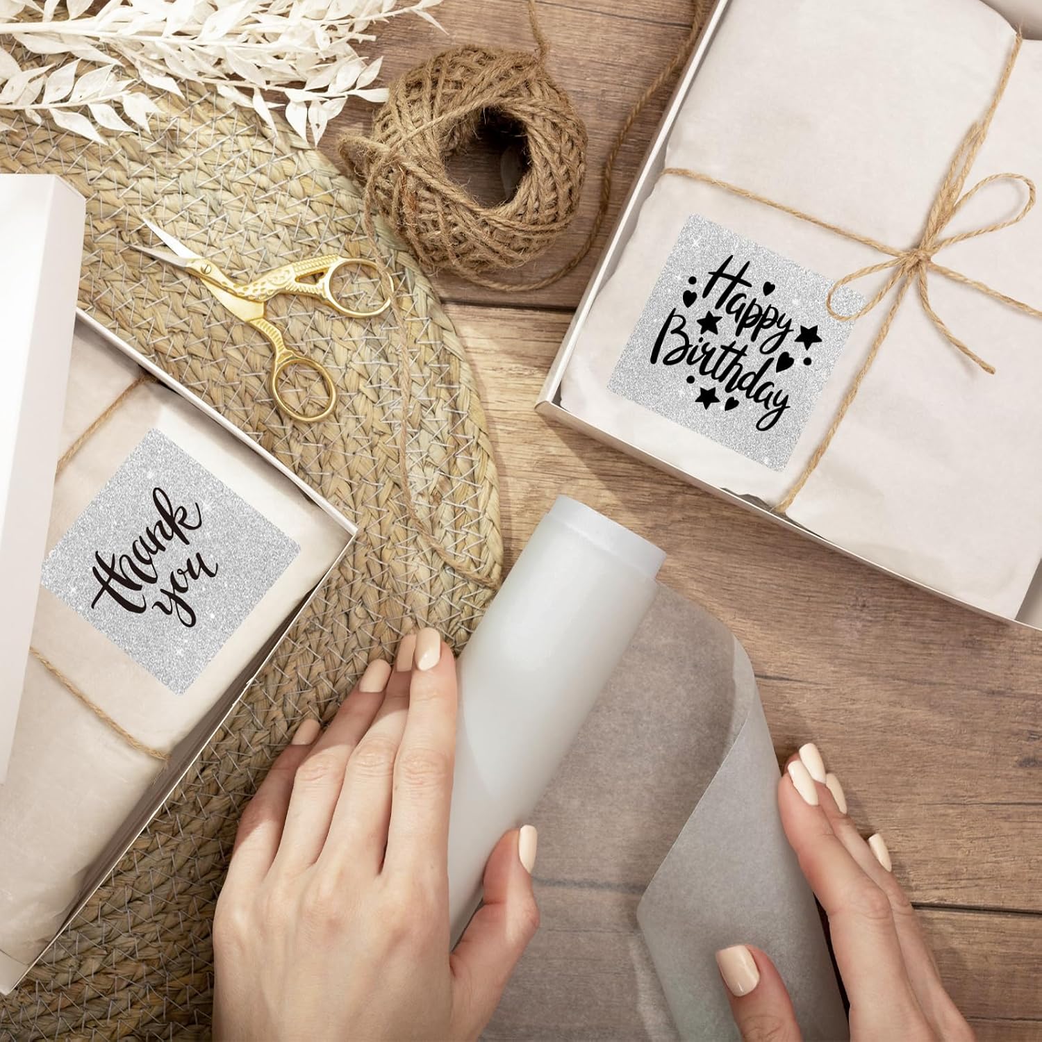 2" x 2" Square Thermal Labels Stickers, Holographic Glitter Thermal Stickers Labels, Waterproof Direct Thermals Label for Small Business, DIY Design- Silver