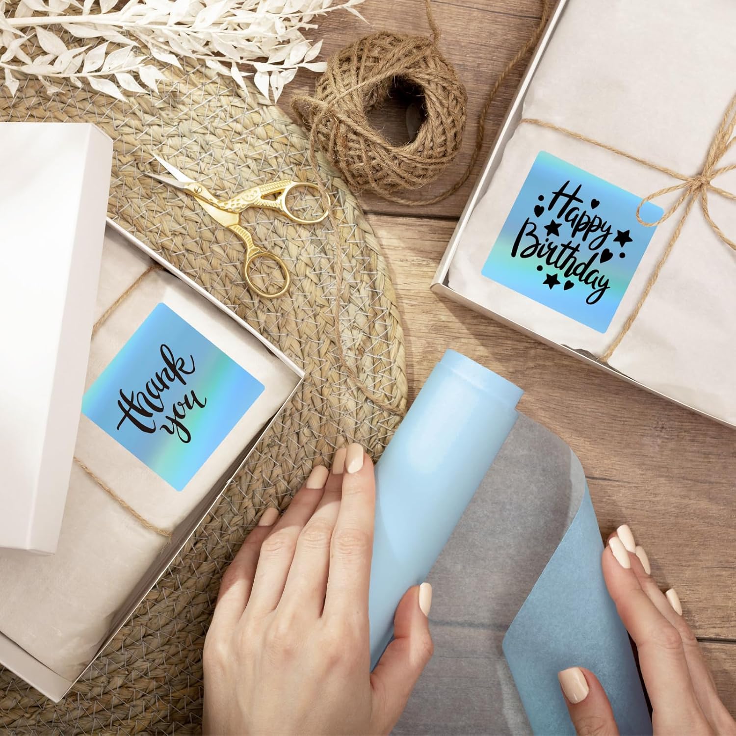 2" x 2" Square Thermal Labels Stickers, Holographic Thermal Stickers Labels, Waterproof Glitter Direct Thermals Label for Small Business, DIY Design- Holographic Blue
