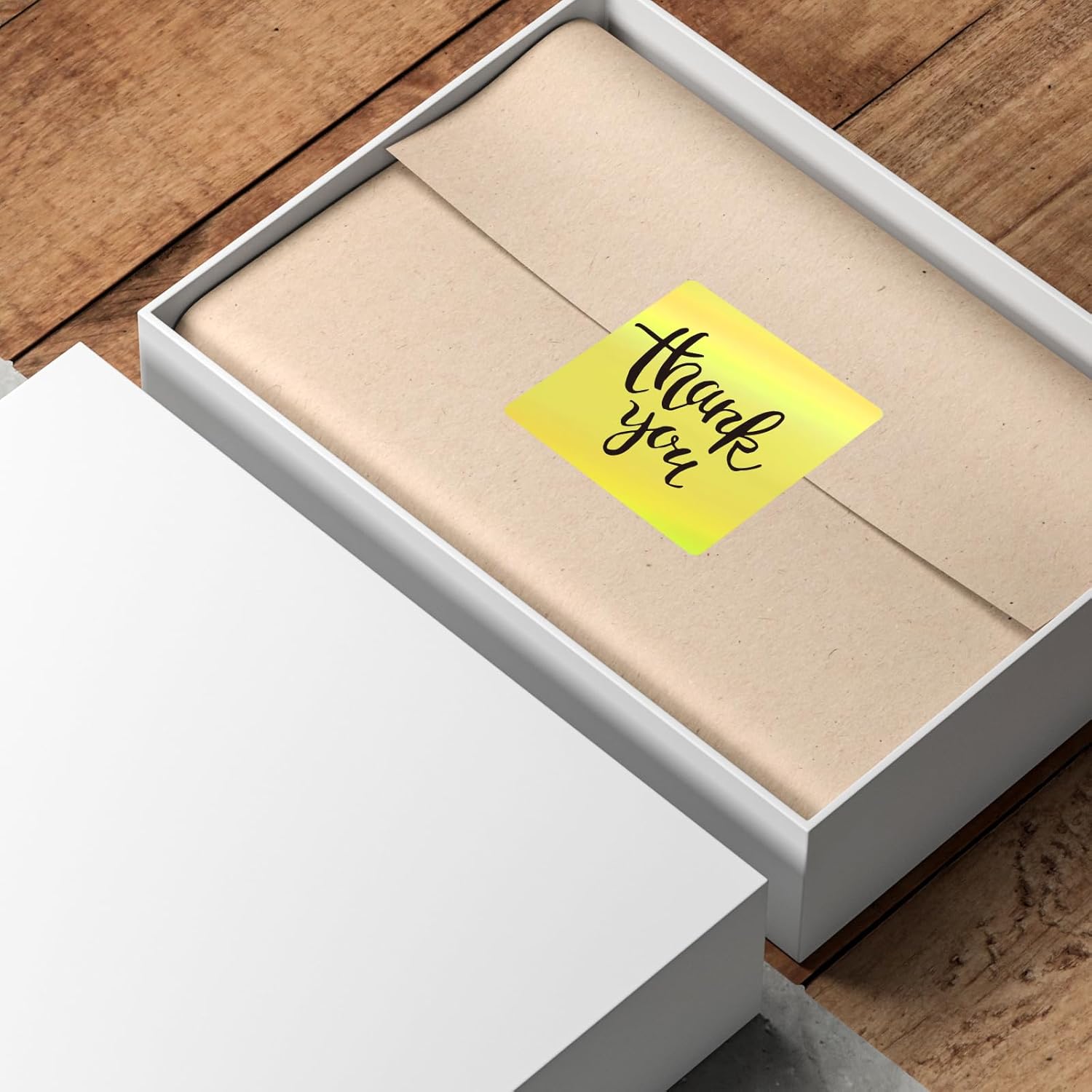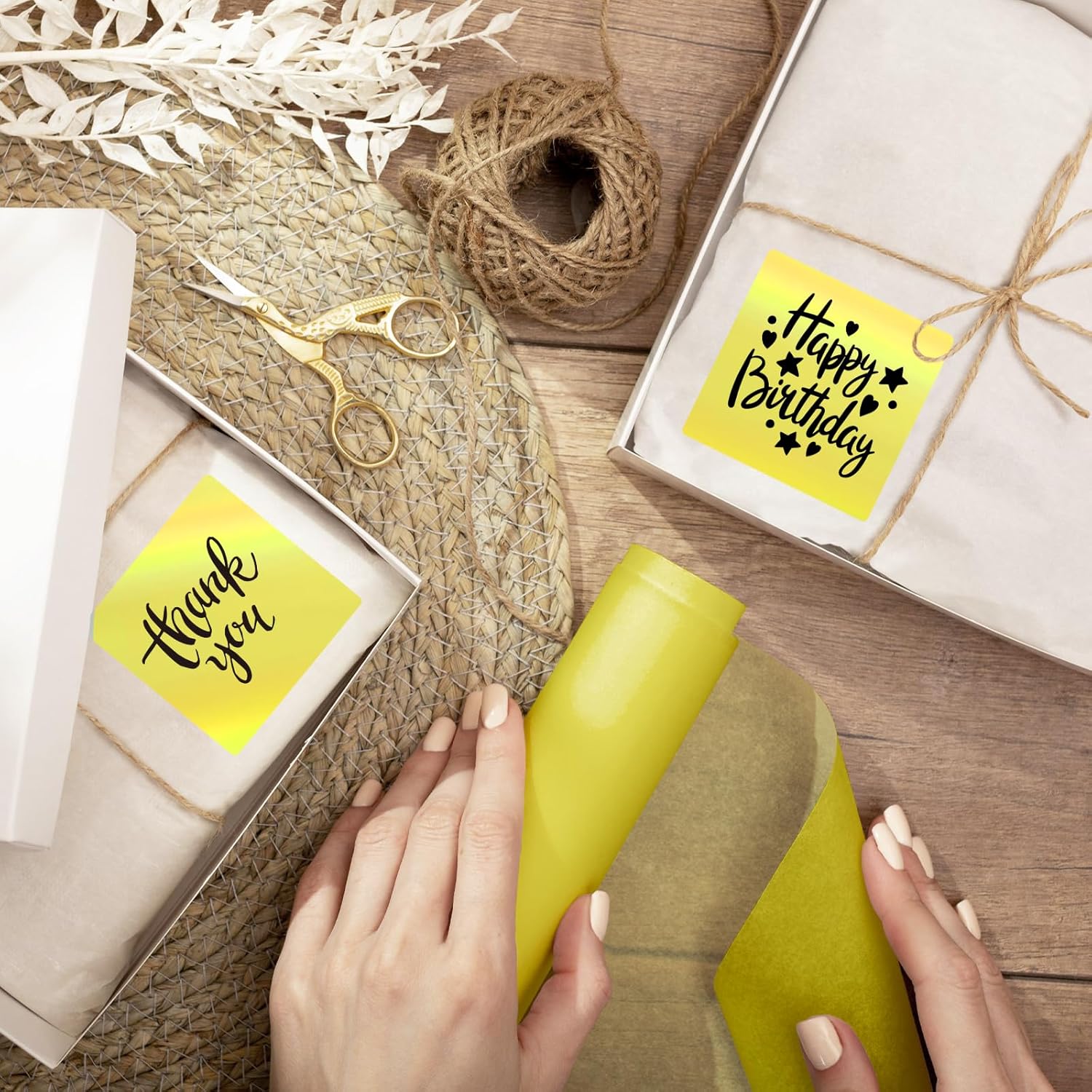 Square Thermal Labels Stickers 2" x 2", Holographic Thermal Stickers Labels, Self-Adhesive Glitter Direct Thermal Label for Small Business, DIY Design- Holographic Yellow