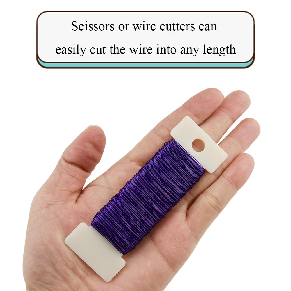 - Packaging: Packaging: 3 rolls per pack. You will receive one pack containing 3 rolls, each with 38 yards/115 feet/35 meters. In total, the three rolls provide 115 yards/345 feet/105 meters of 26-gauge purple color floral wire. They can be cut to your desired length, ensuring you never run out. Hurry, add it to your cart and bring it home!