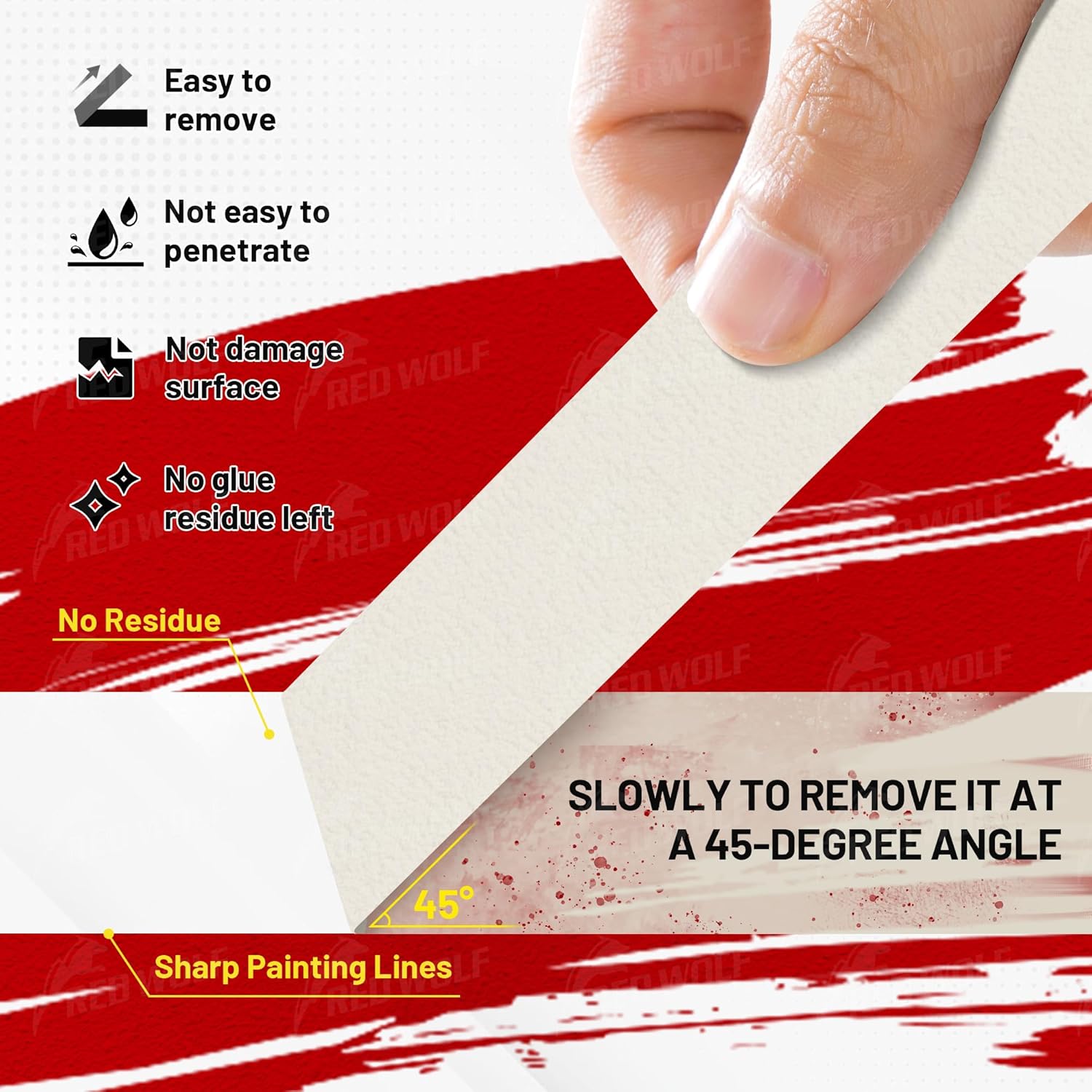 - Widely Application: RED WOLF masking tape is designed for use on multiple surfaces, including stick to almost all surface like wood, dry wall, painted walls; Masking tape will also work well for making temporary labels